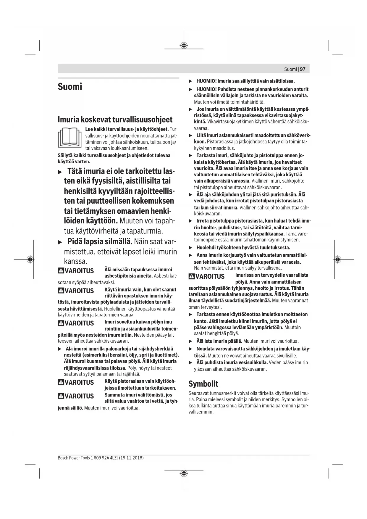 Suomi | 97 Bosch Power Tools 1 609 92A 4LZ | (19.11.2018)98 | Suomi
