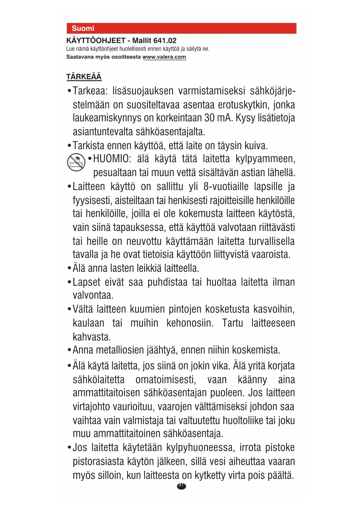 •Tarkeaa: lisäsuojauksen varmistamiseksi sähköjärje-