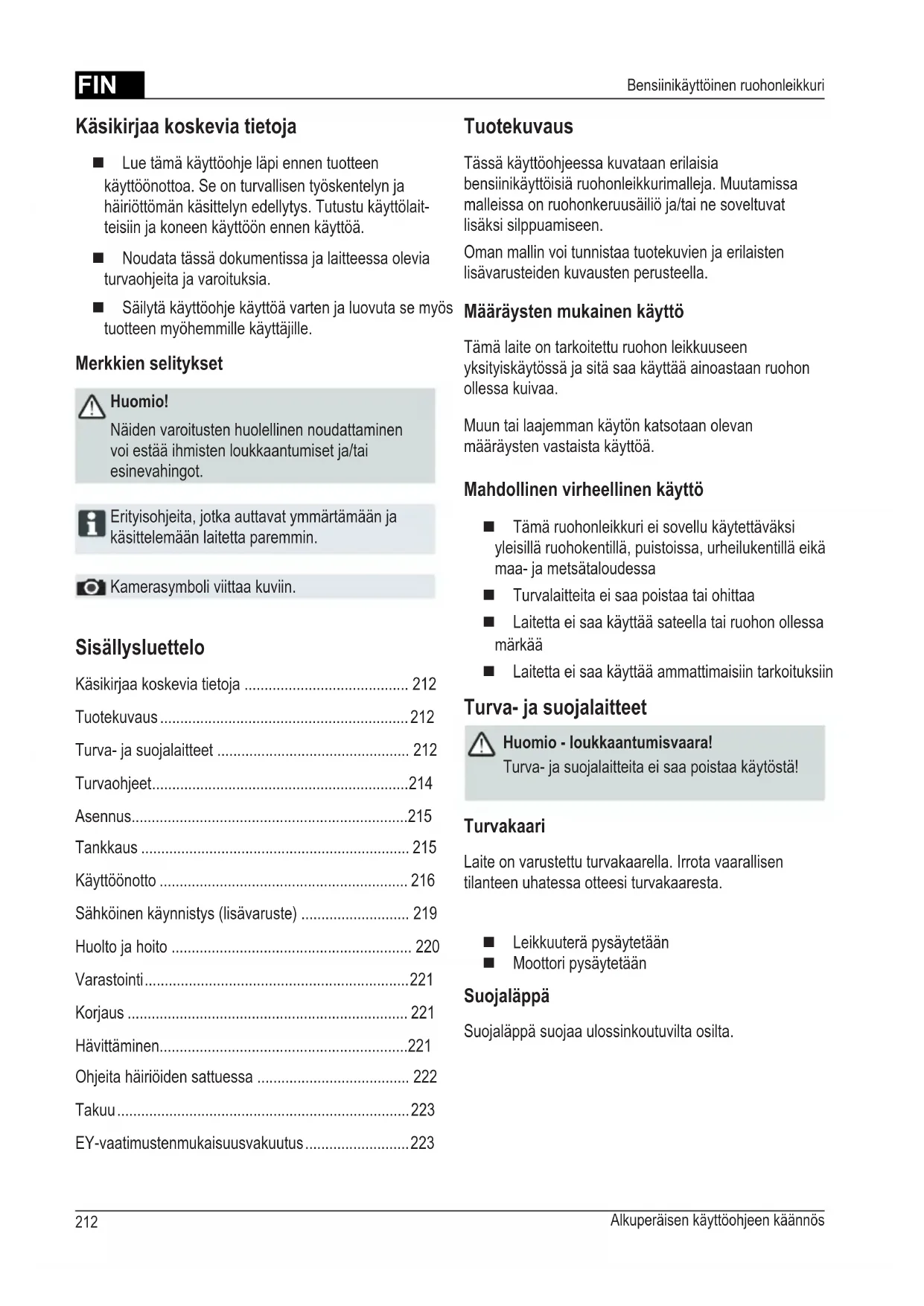 Turva- ja suojalaitteita ei saa poistaa käytöstä!