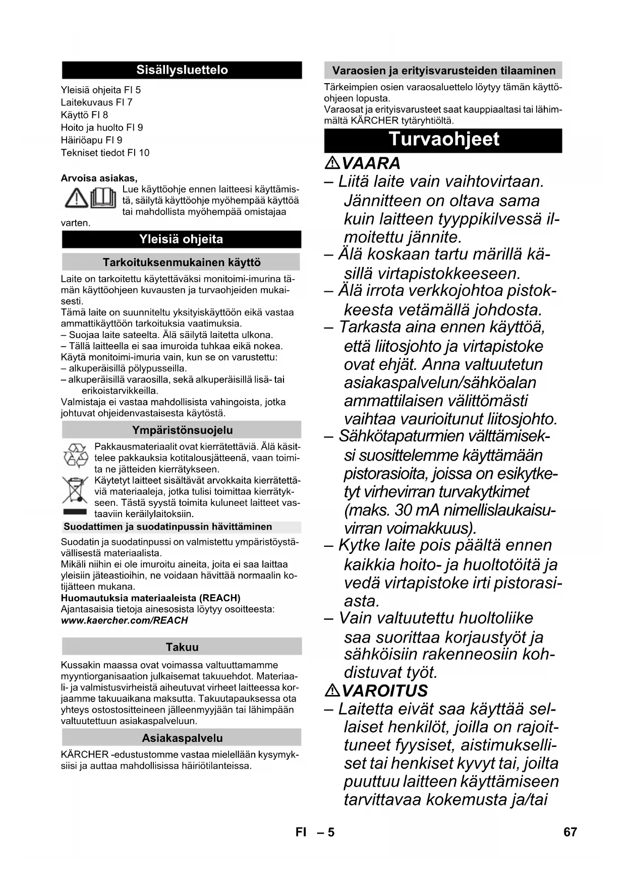 Yleisiä ohjeita FI 5