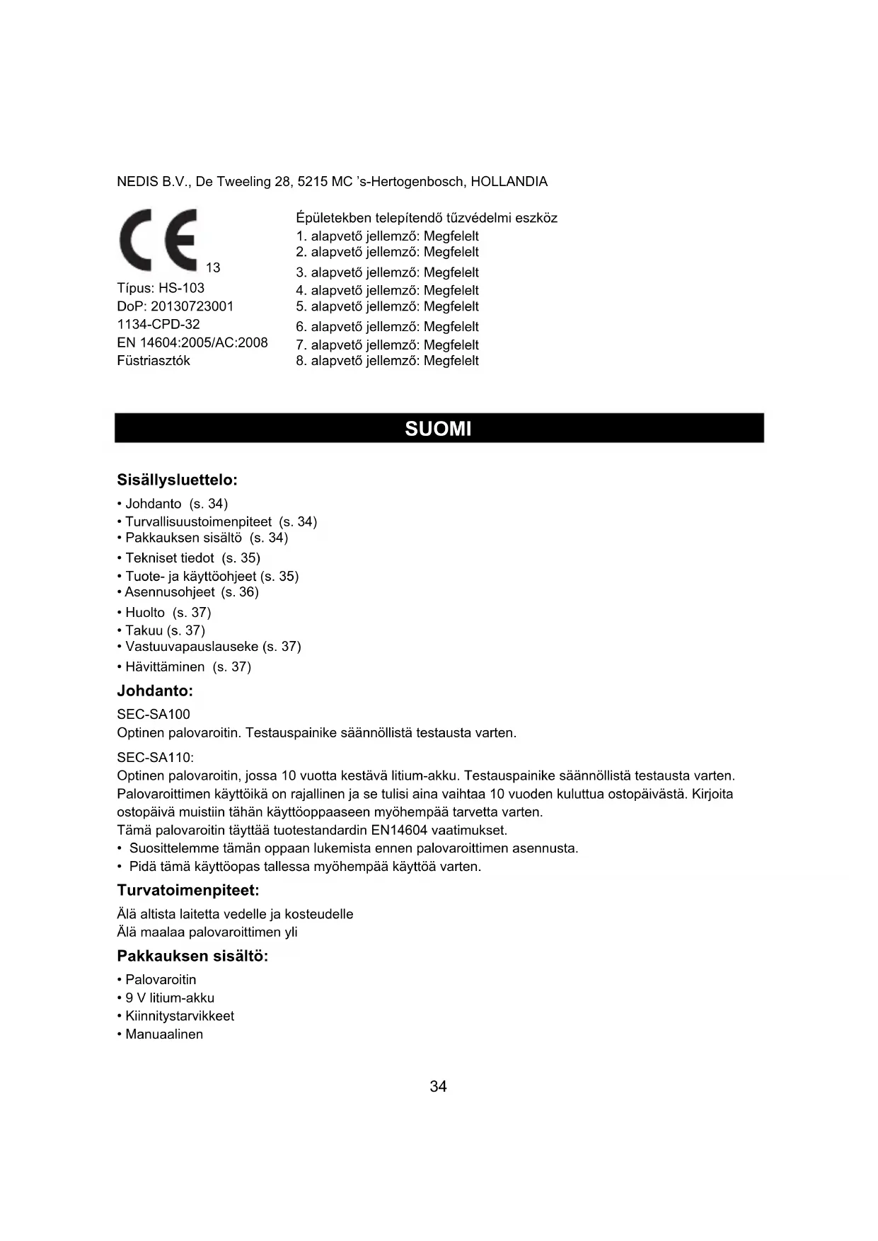 SECSA100 - Savuilmaisin NEDIS - Notice d'utilisation et mode d'emploi gratuit