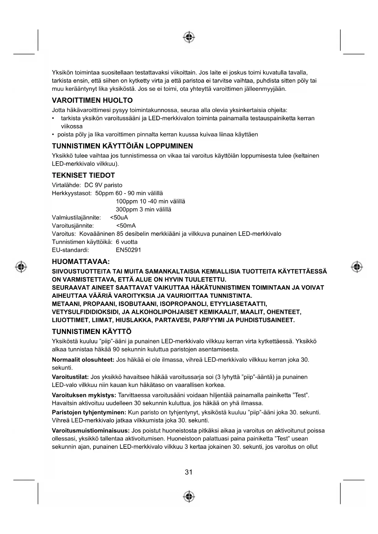 • poista pöly ja lika varoittimen pinnalta kerran kuussa kuivaa liinaa käyttäen