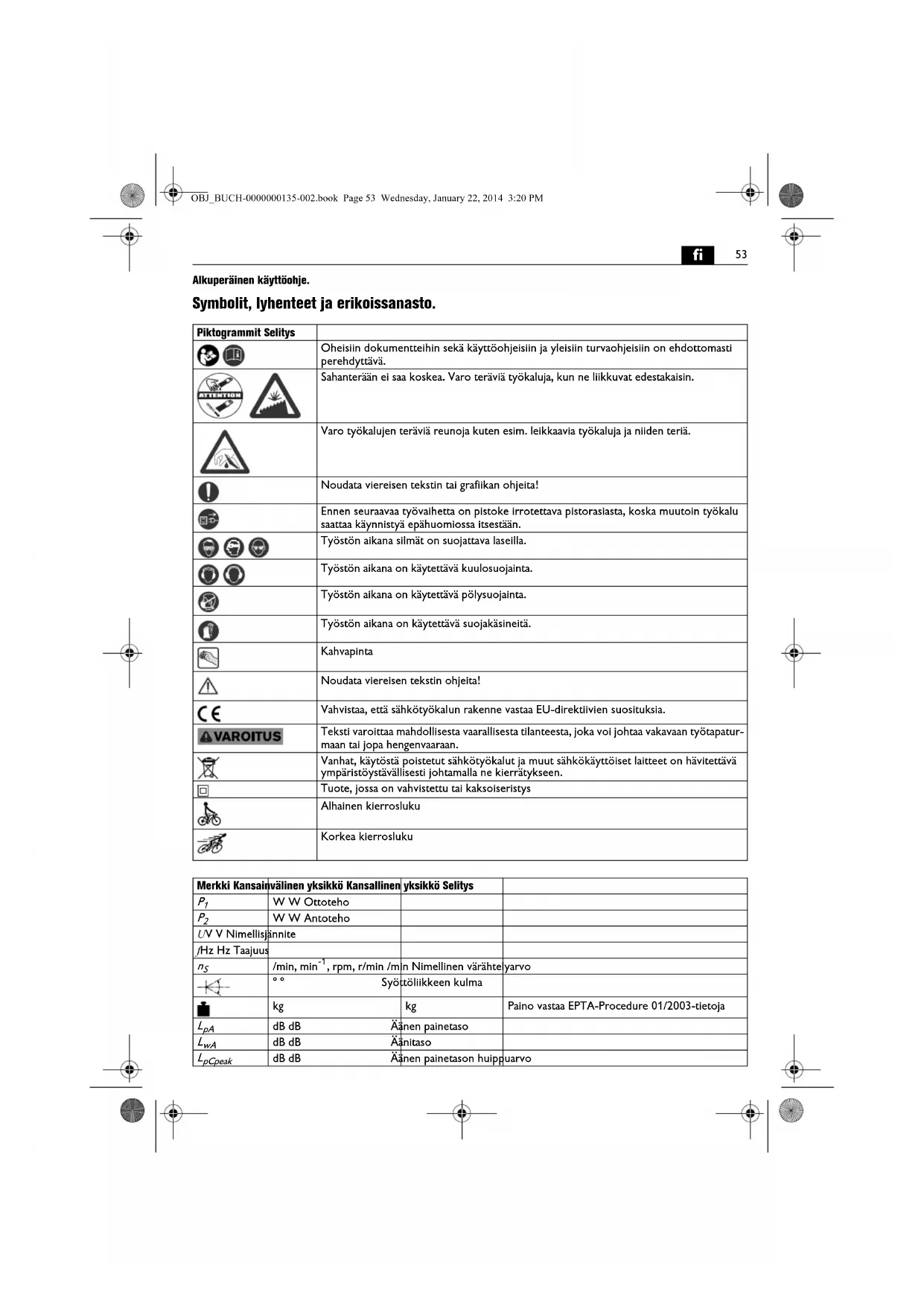 | Työstön akanana on käytettävä kuulosuojainta. | |