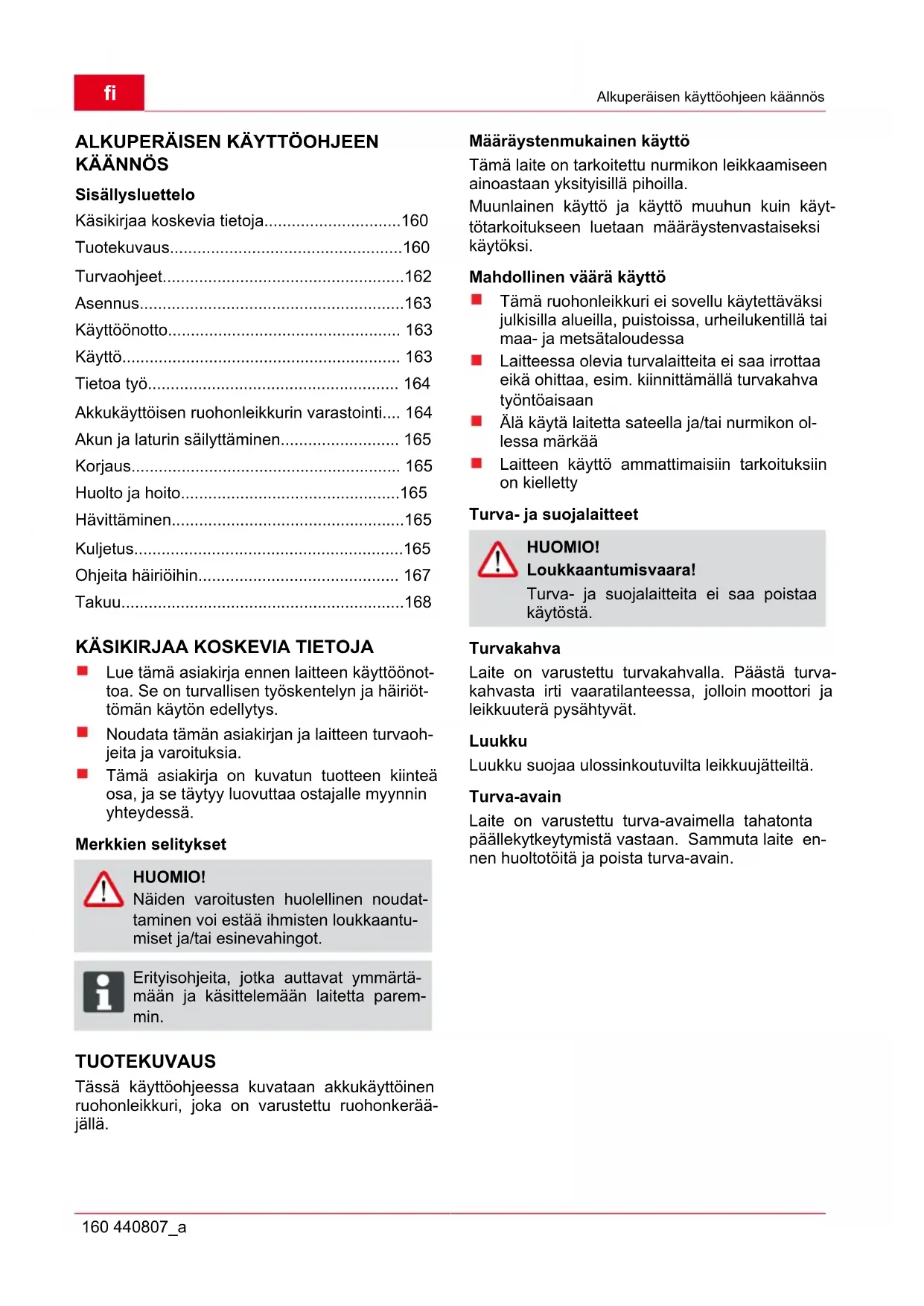 FI Alkuperäisen käyttöohjeen käännös 160