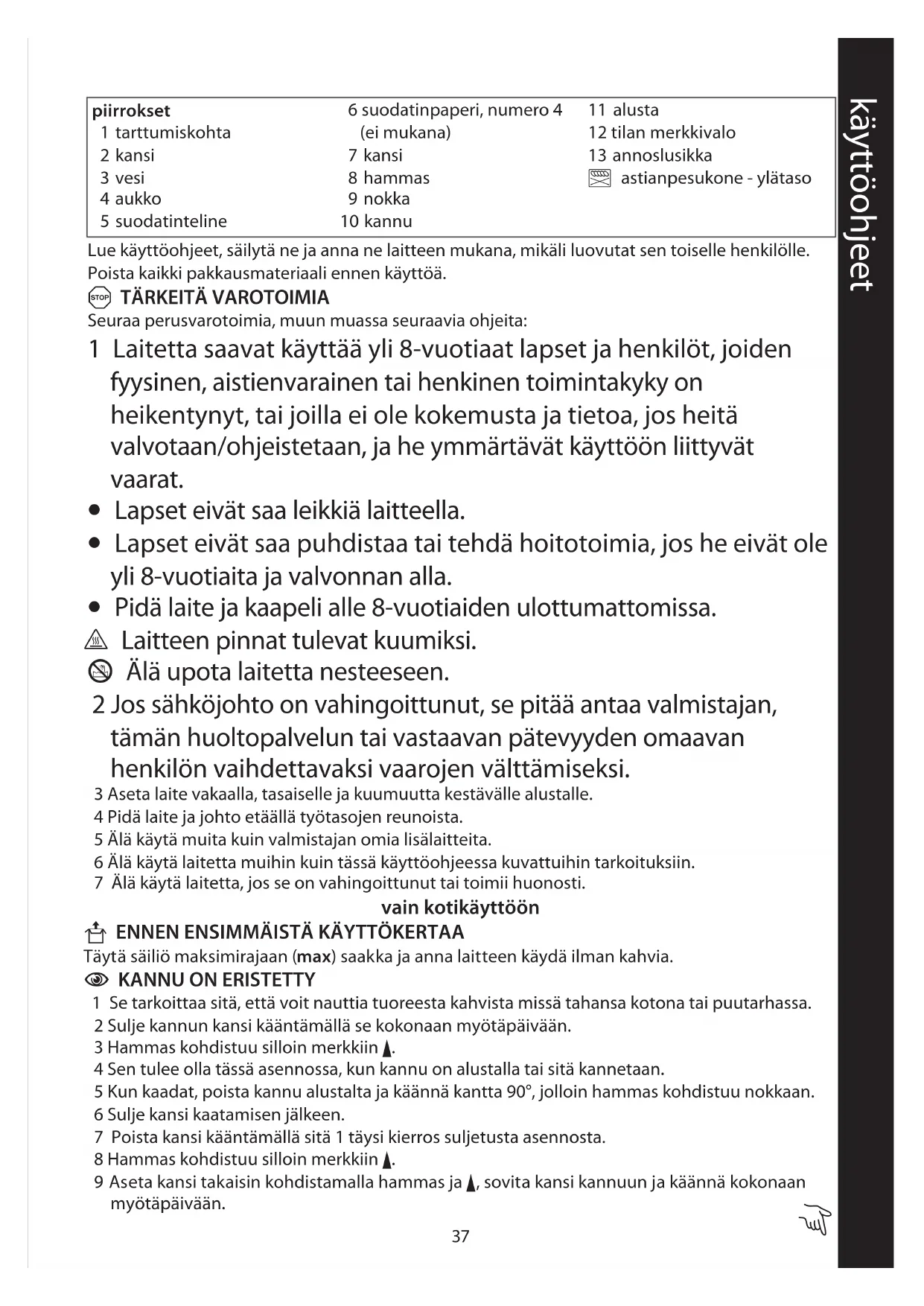 4 Sen tulee olla tässä asennossa, kun kannu on alustalla tai sitä kannetaan.