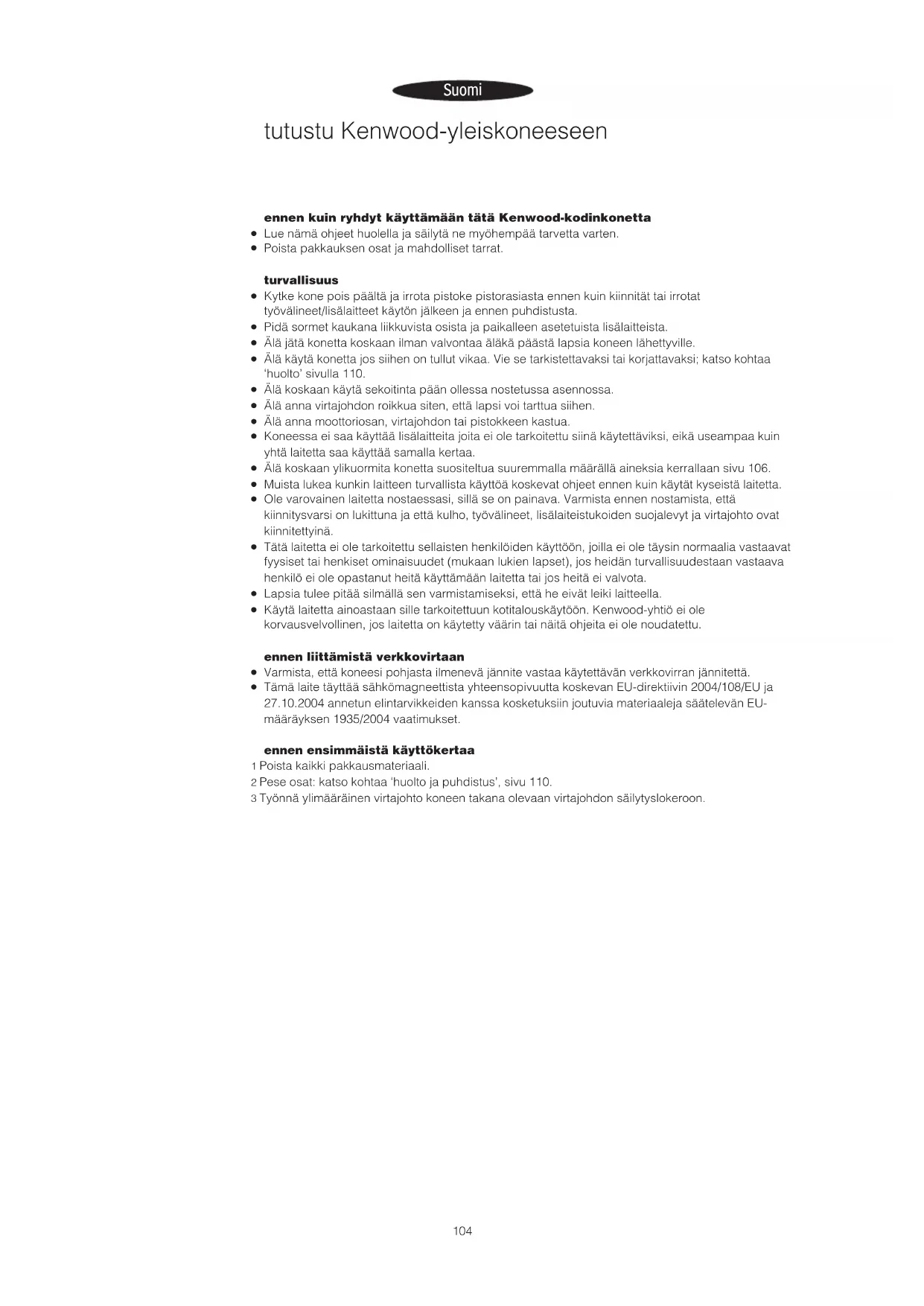 102103ennen kuin ryhdyt käyttämään tätä Kenwood-kodinkonetta