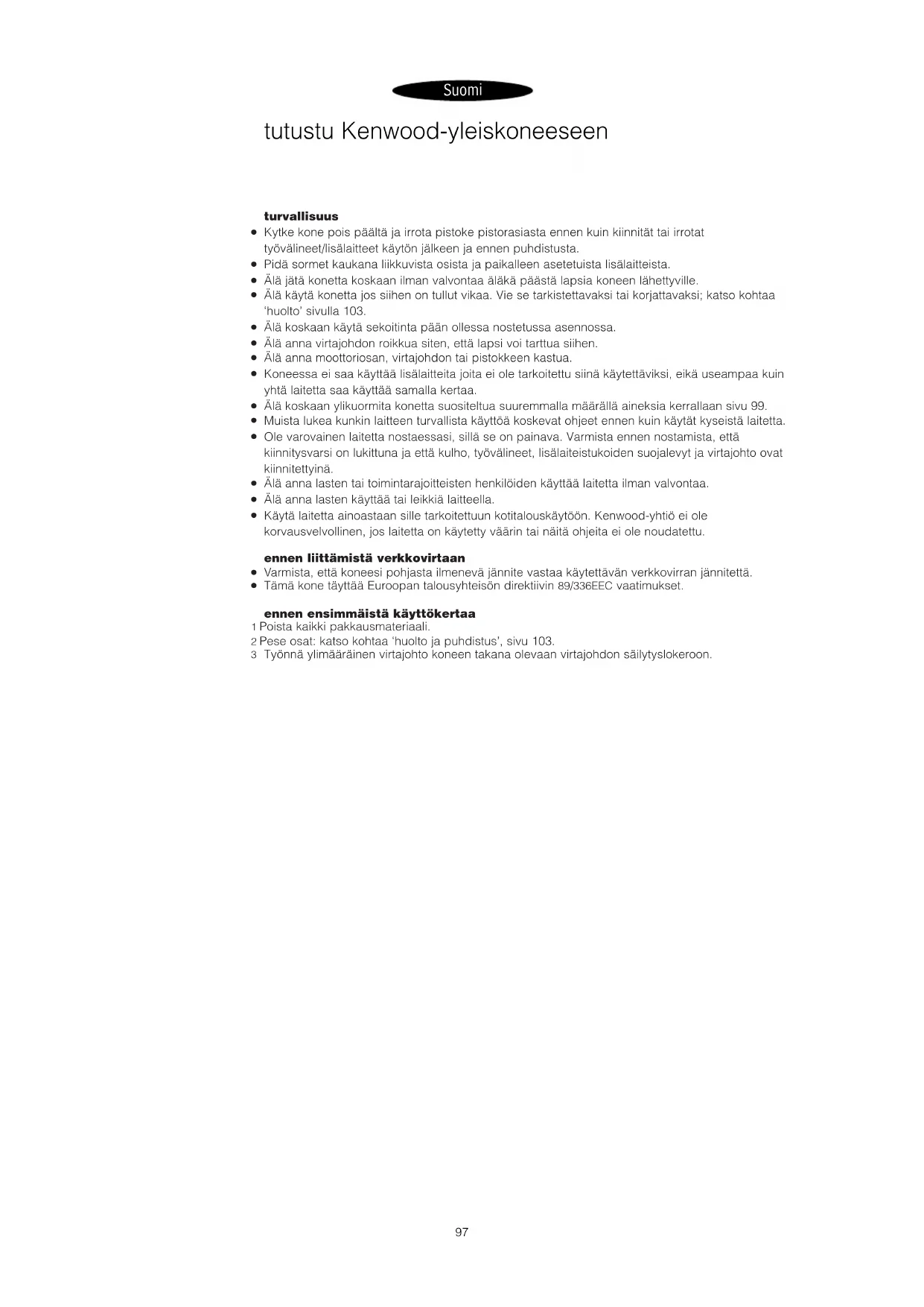 sivu 97 käyttöohjeet Onnittelut Kenwood-ostoksen johdosta! Koneeseenne kuuluu niin suuri määrä erilaisia laitteita,