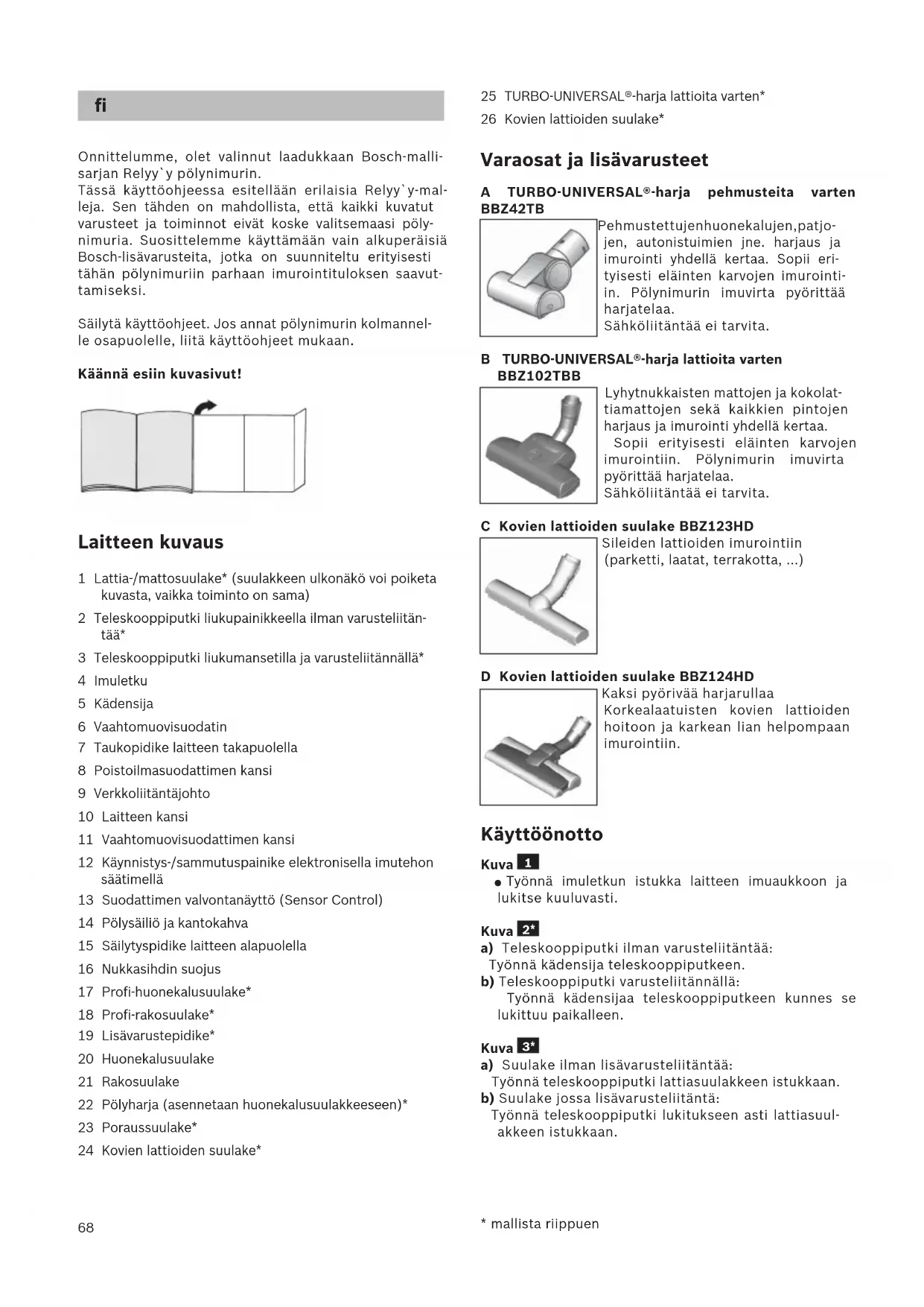 pölynimuria vain tässä käyttöohjeessa annettujen