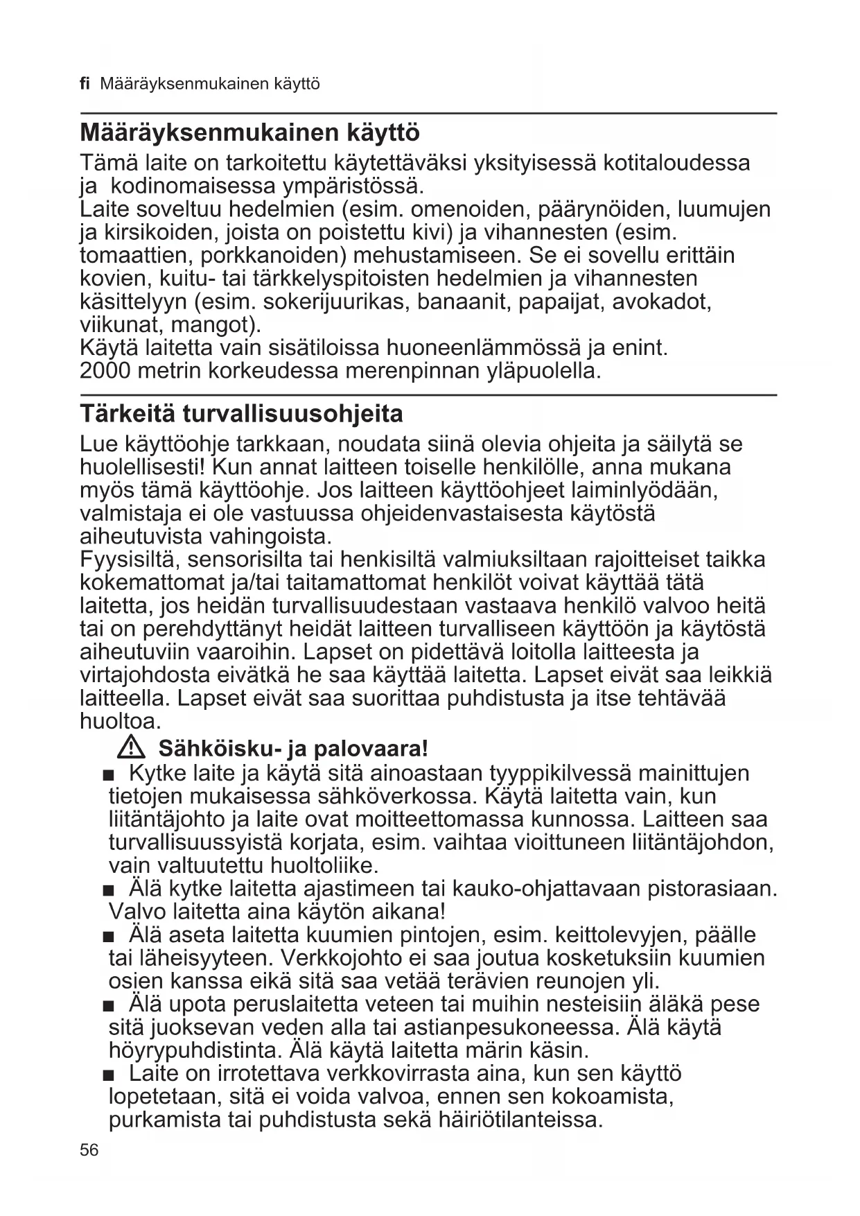 Määräyksenmukainen käyttö 56