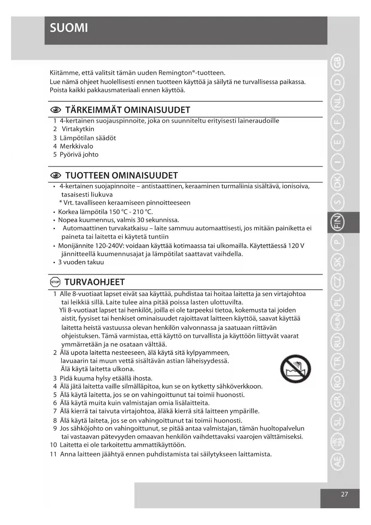 SUOMI Kiitämme, että valitsit tämän uuden Remington®-tuotteen.
