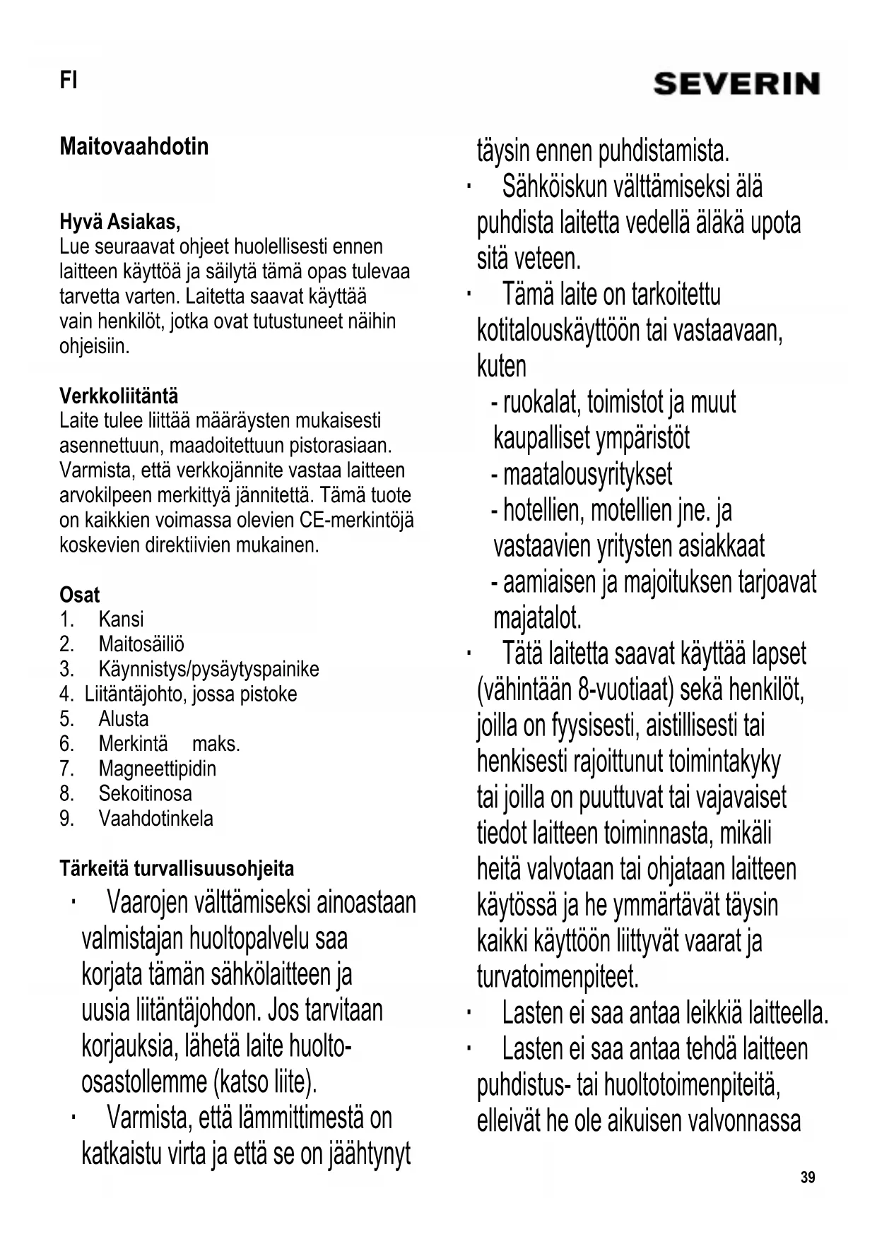KÄYTTÖOHJE SM 3581 SEVERIN