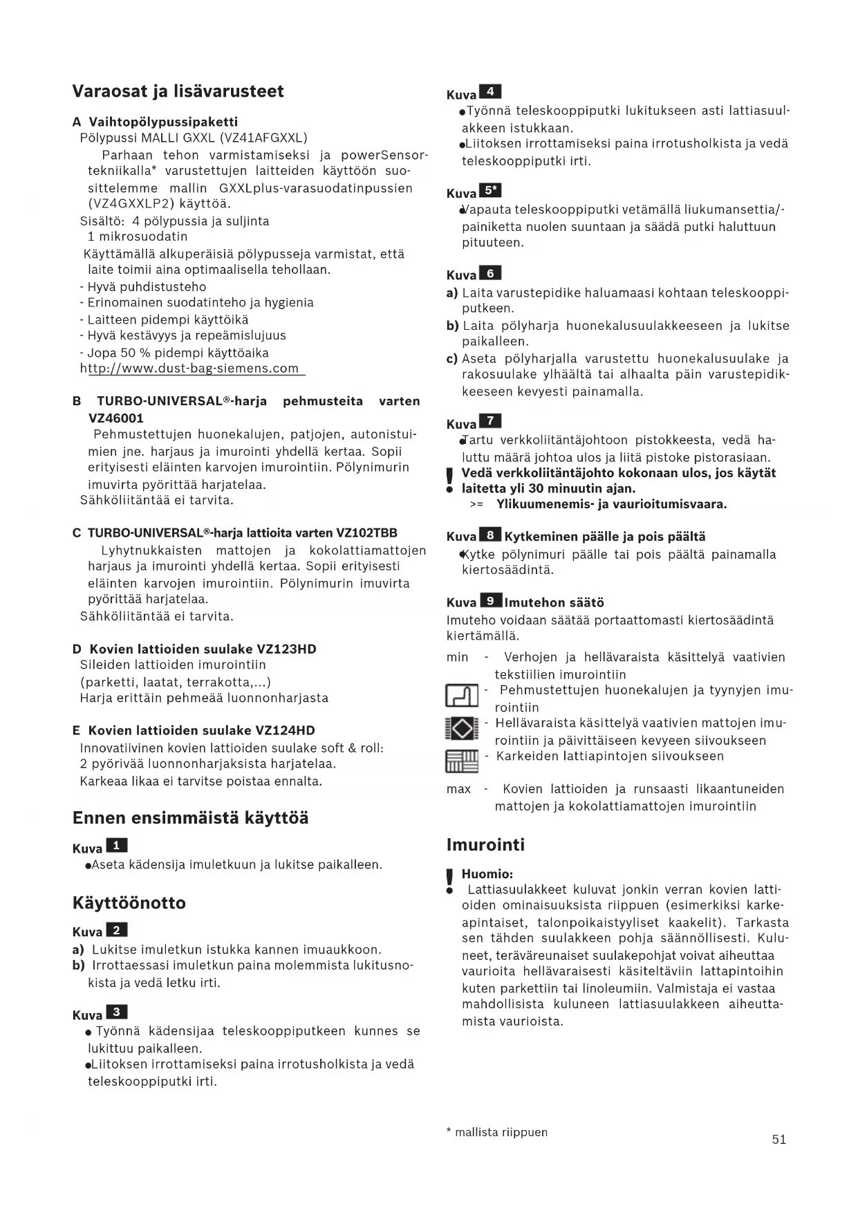 käyttöön, ei ammattikäyttöön. Käytä pölynimuria vain