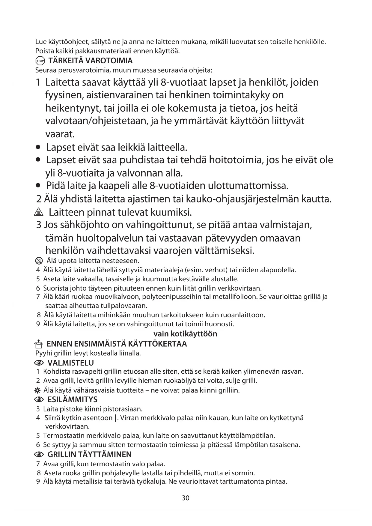U ENNEN ENSIMMÄISTÄ KÄYTTÖKERTAA Pyyhi grillin levyt kostealla liinalla.