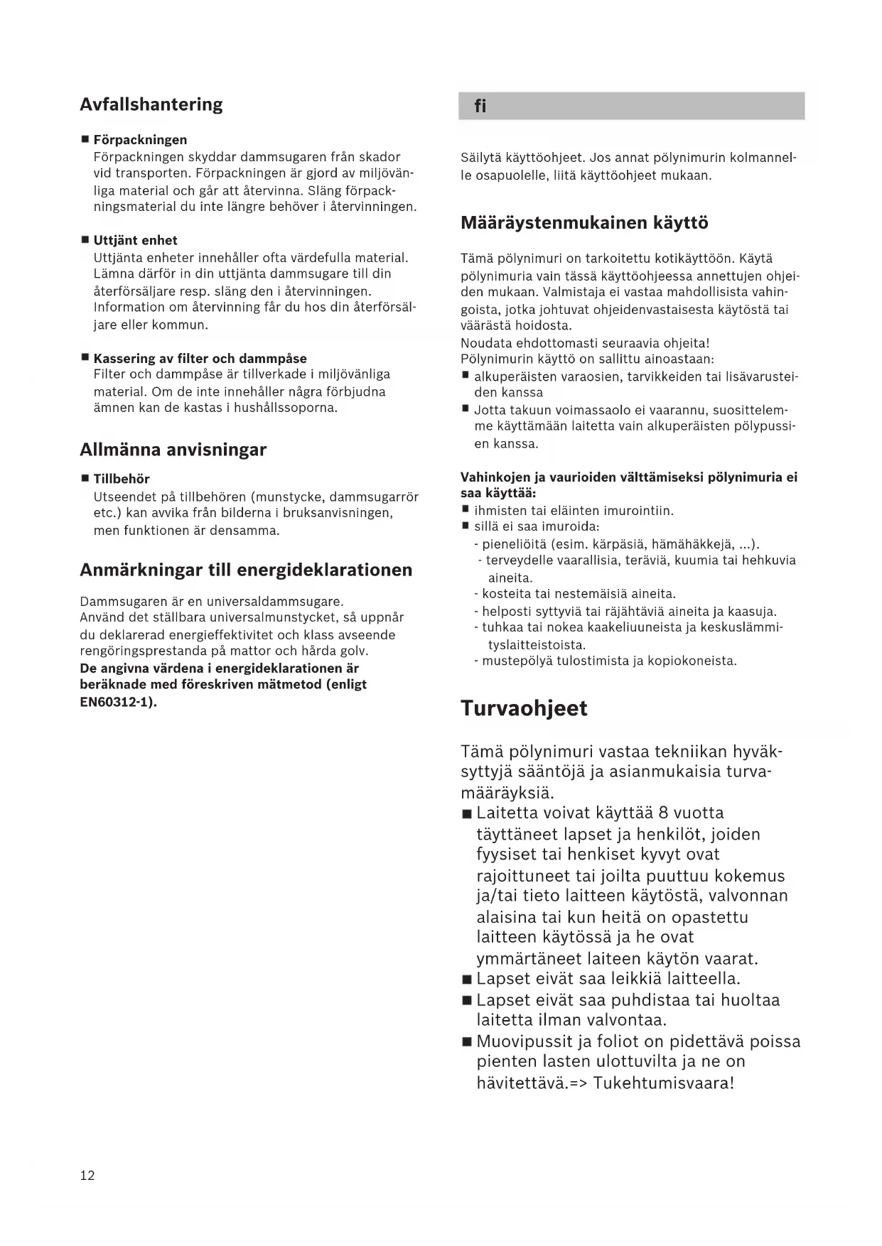 Säilytä käyttöohjeet. Jos annat pölynimurin kolmannel-