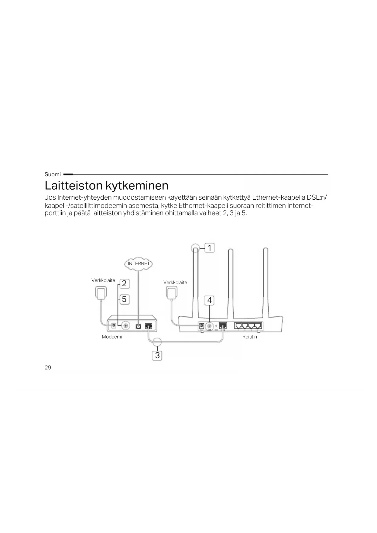 kaapeli-/satelliittimodeemin asemesta, kytke Ethernet-kaapeli suoraan reitittimen Internet-