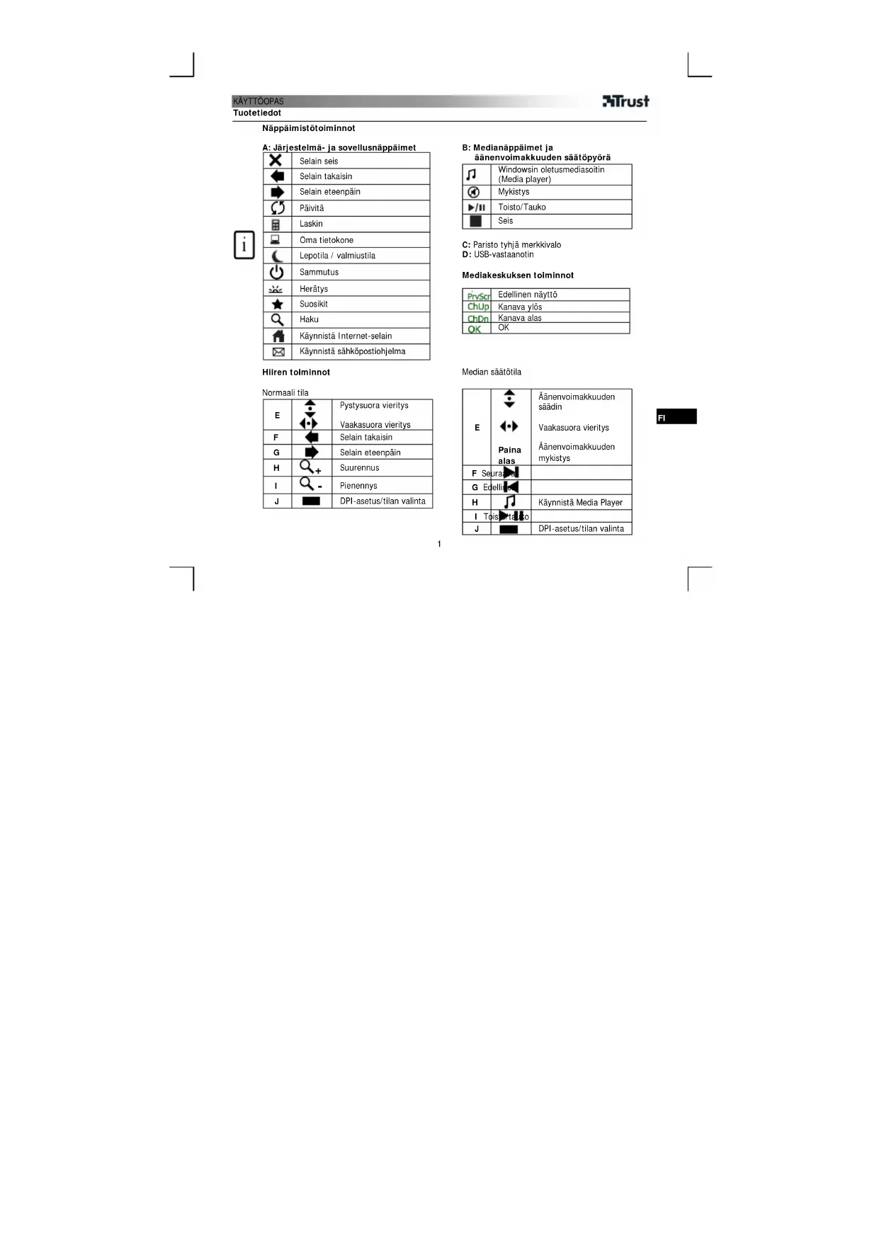 Lataa ohjeet laitteellesi Näppäimistö PDF-muodossa ilmaiseksi! Löydä käyttöohjeesi Wireless Laser MediaPlayer Deskset - TRUST ja ota elektroninen laitteesi takaisin hallintaan. Tällä sivulla julkaistaan kaikki laitteidesi käyttöön tarvittavat asiakirjat. Wireless Laser MediaPlayer Deskset merkiltä TRUST.