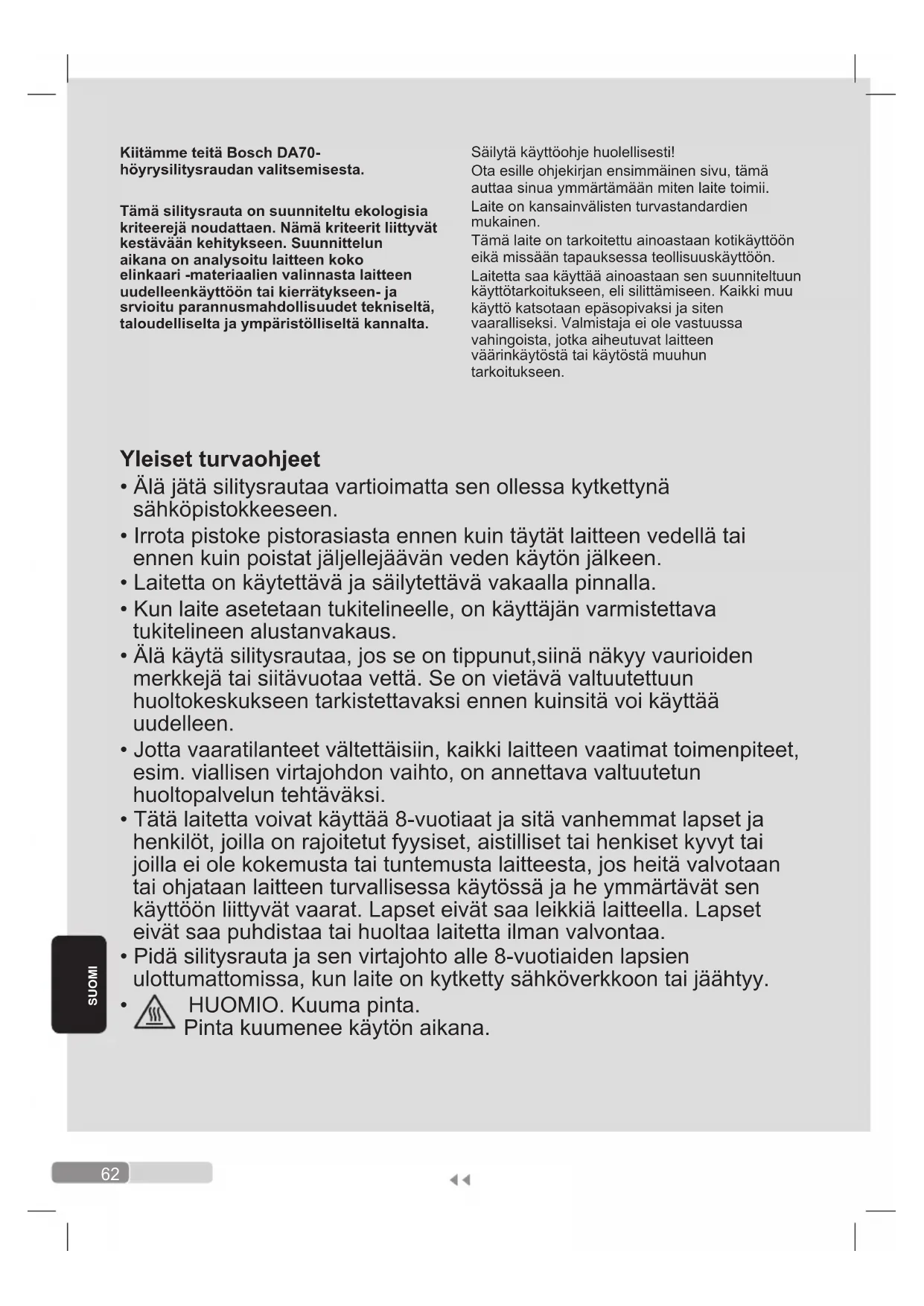 TDA7028210 - Silitysrauta BOSCH - Notice d'utilisation et mode d'emploi gratuit