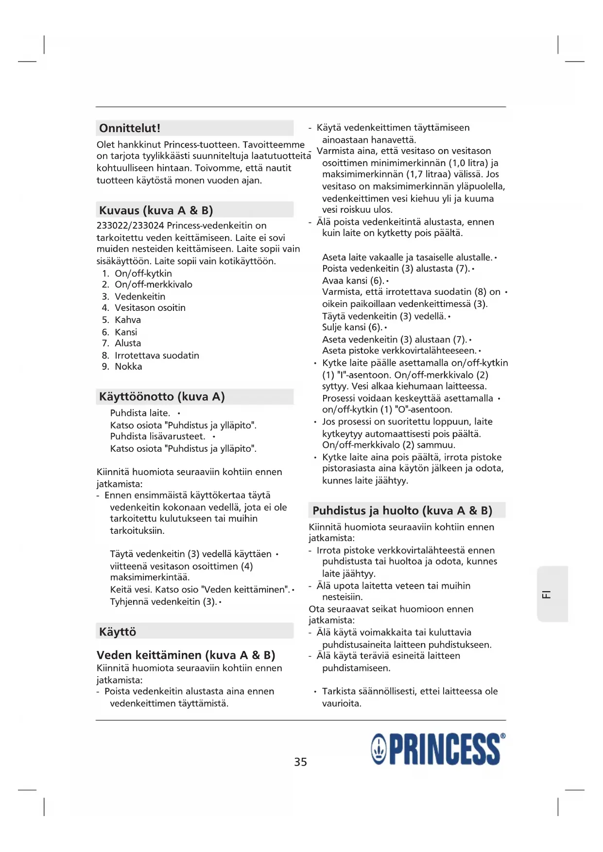 Olet hankkinut Princess-tuotteen. Tavoitteemme