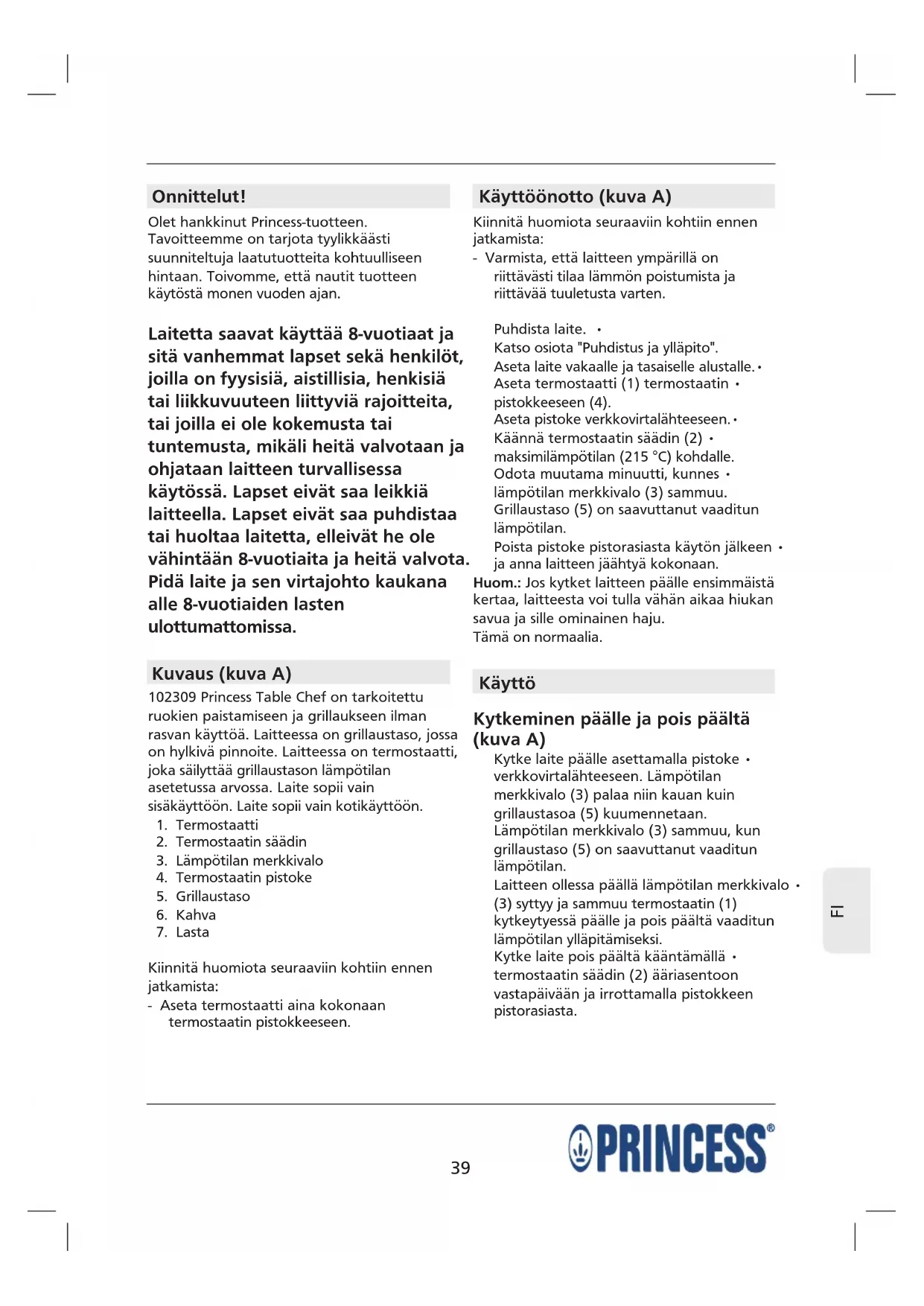KÄYTTÖOHJE Table Chef Duet 102309 PRINCESS