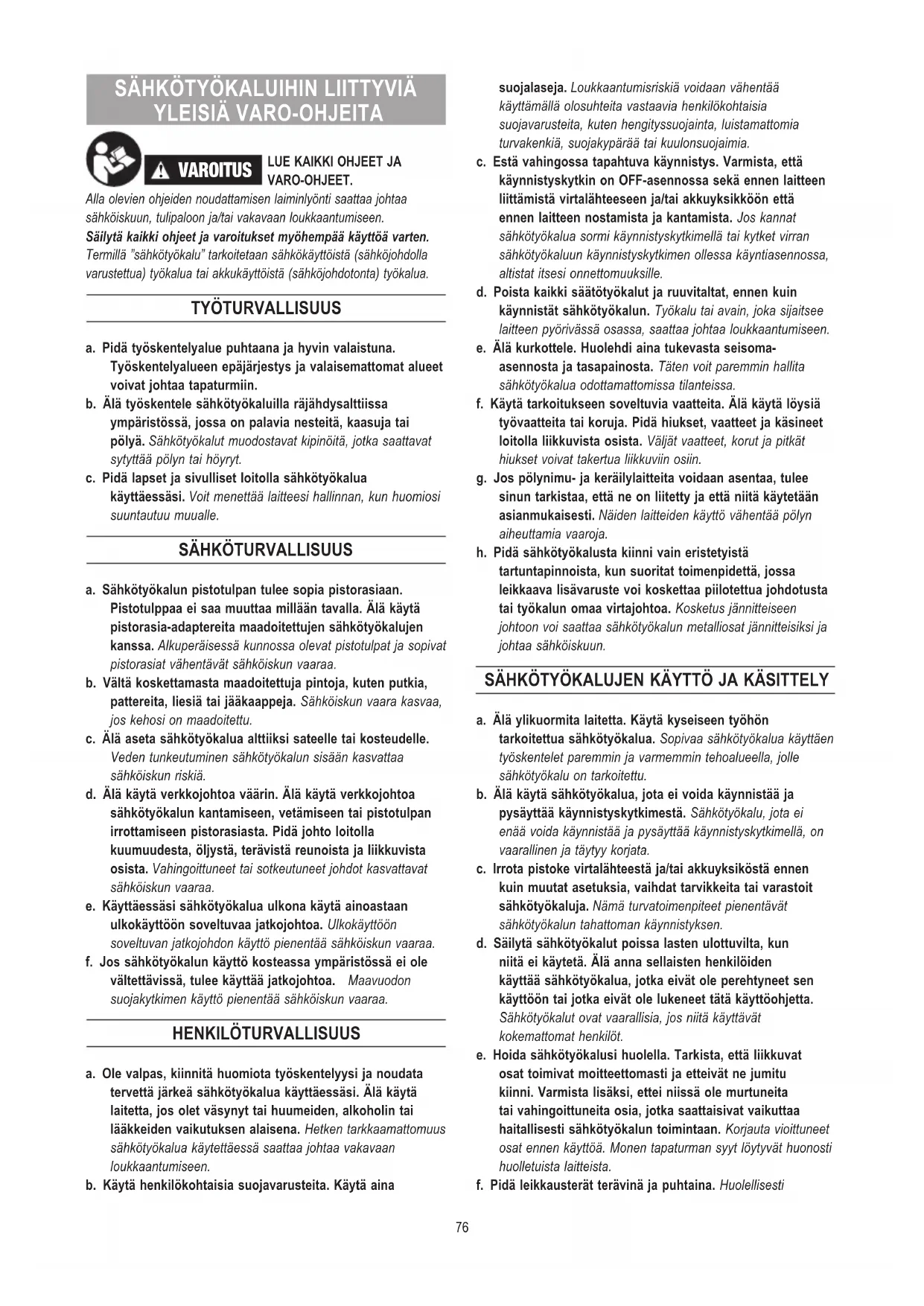 SÄHKÖTYÖKALUJEN KÄYTTÖ JA KÄSITTELY