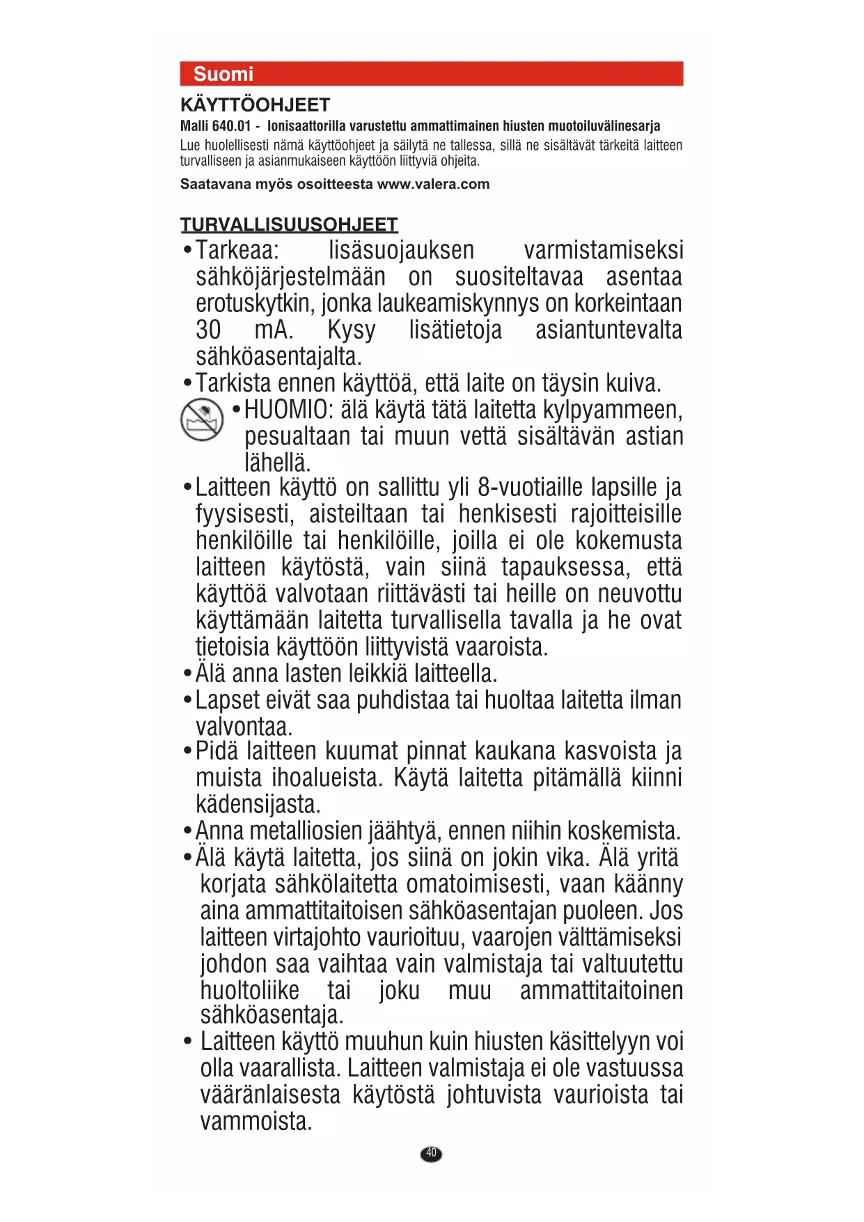 KÄYTTÖOHJE Ionic Multistyle Professional 640.01 VALERA