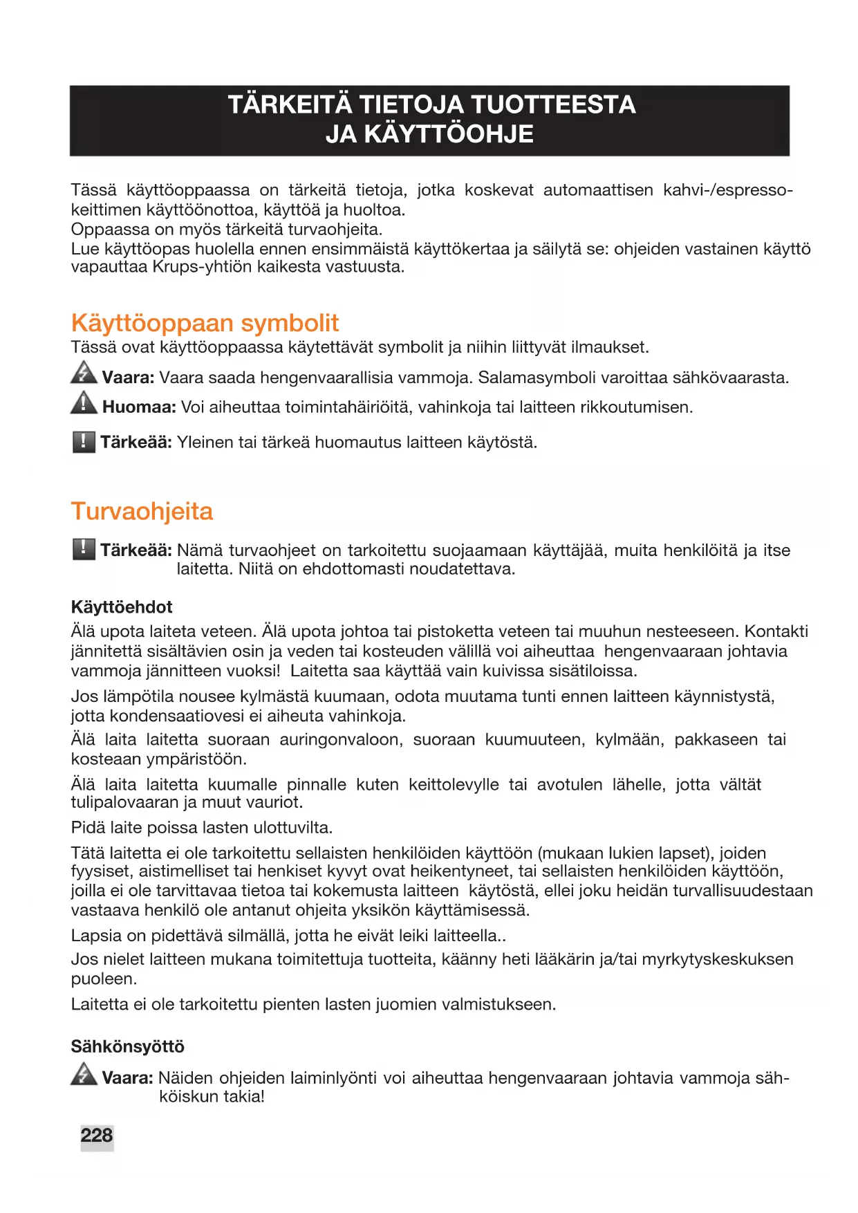 TÄRKEÄÄ TIETOA TUOTTEESTA JA KÄYTTÖOHJE 228