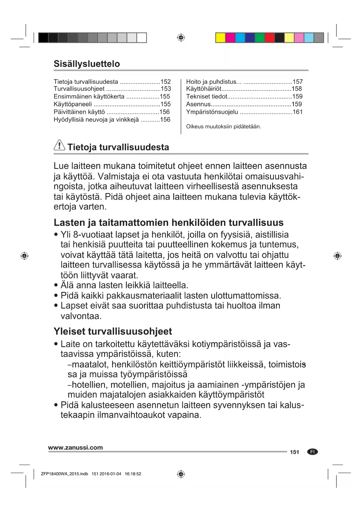 Tietoja turvallisuudesta ZFP18400WA_2015.indb 151 2016-01-04 16:18:52152