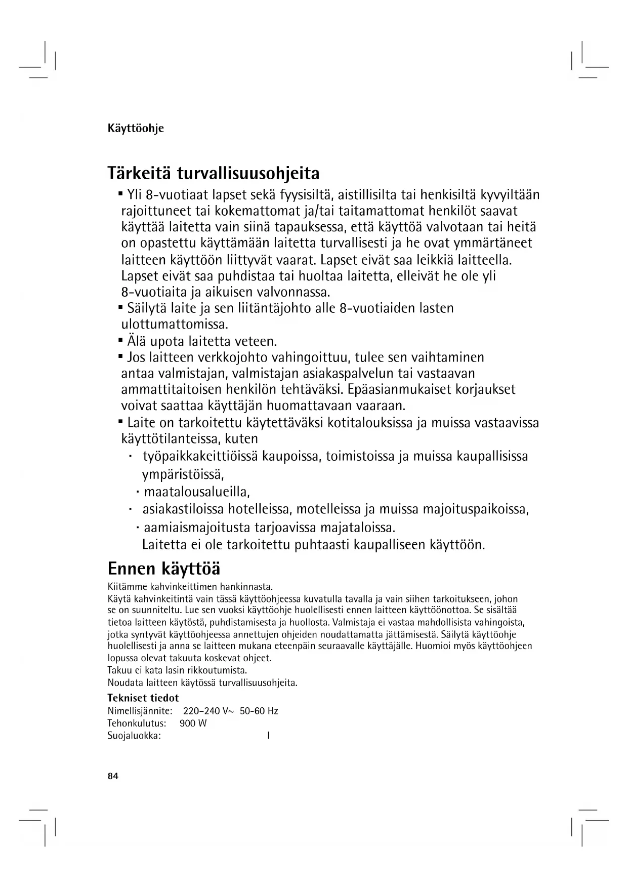 ▪ Laite on tarkoitettu käytettäväksi kotitalouksissa ja muissa vastaavissa