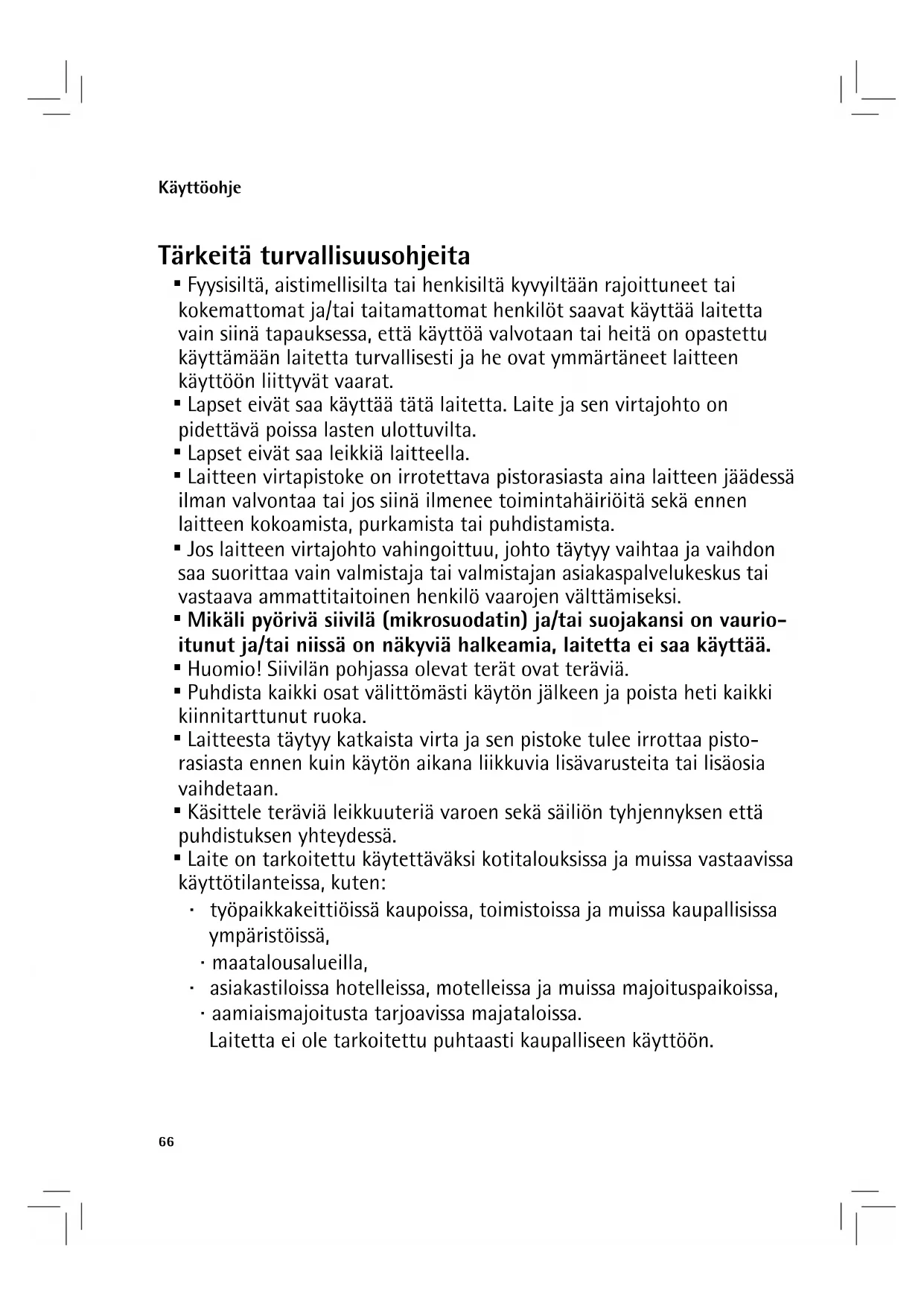 ▪ Laite on tarkoitettu käytettäväksi vain kotitalouksissa ja sisätiloissa.
