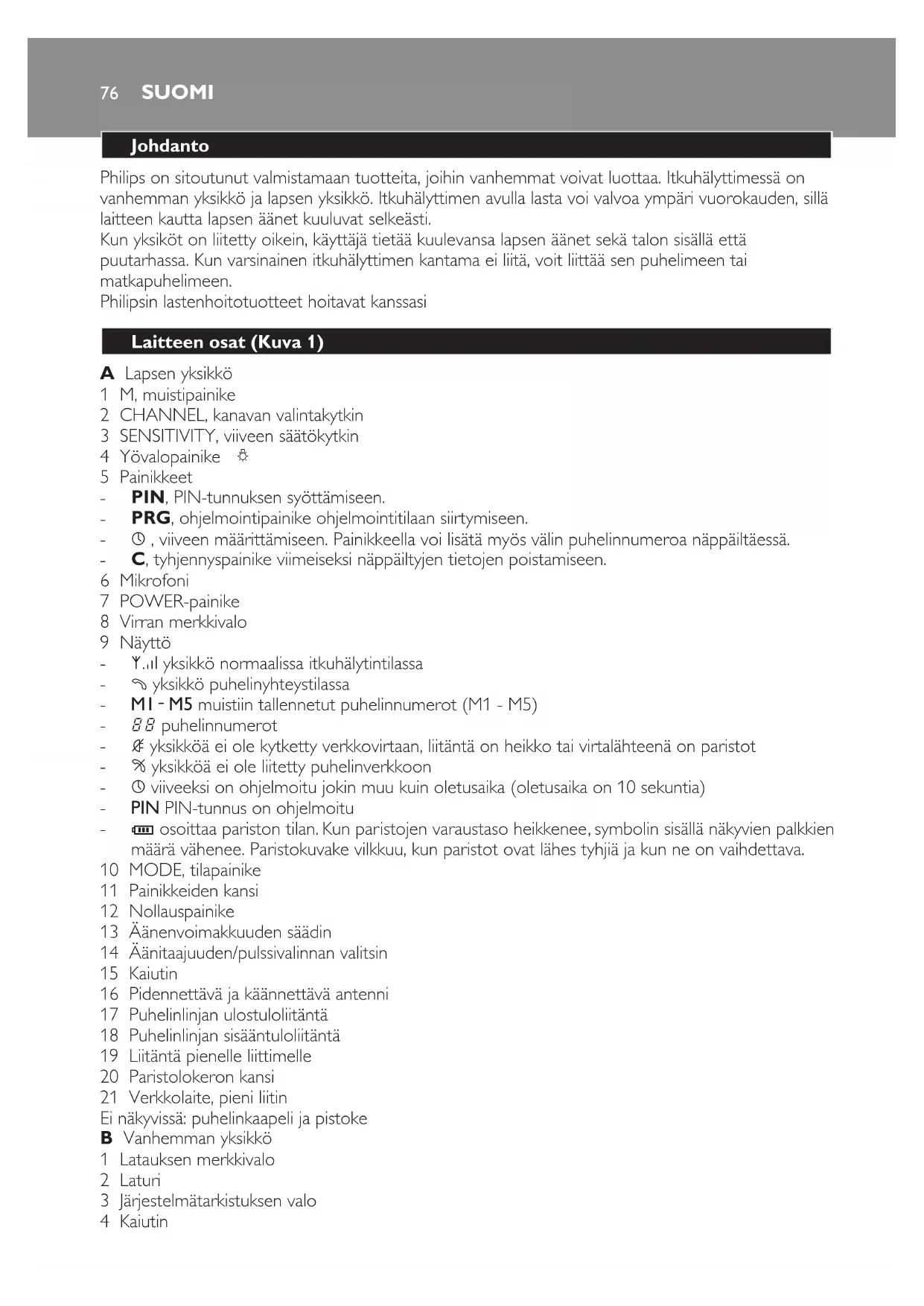vanhemman yksikkö ja lapsen yksikkö. Itkuhälyttimen avulla lasta voi valvoa ympäri vuorokauden, sillä