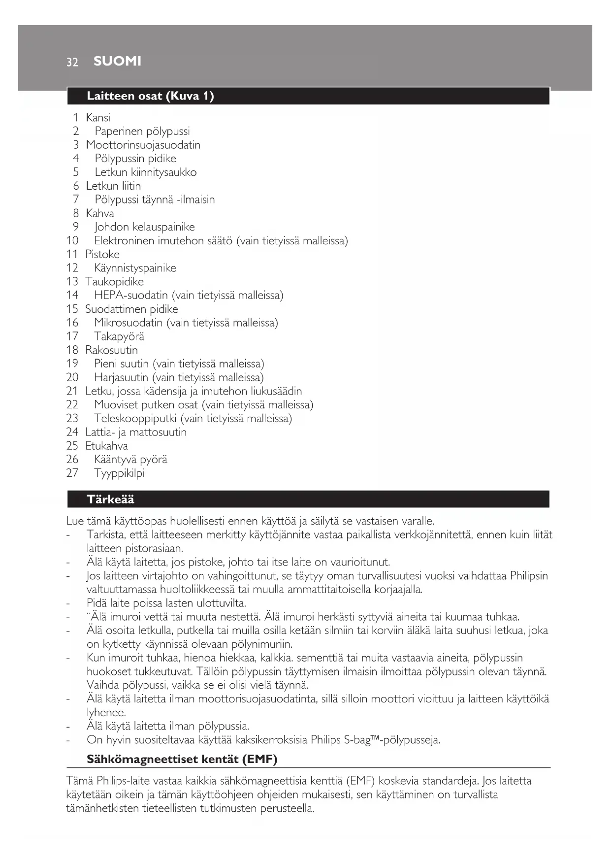 TämäPhilips-laitevastaakaikkiasähkömagneettisiakenttiä(EMF)koskeviastandardeja.Joslaitetta