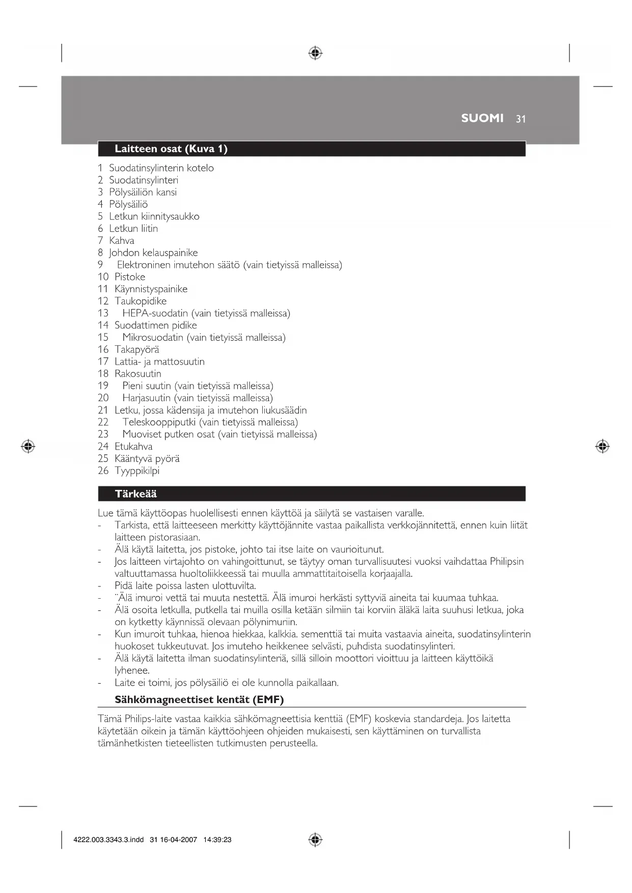 13 HEPA-suodatin(vaintietyissämalleissa)