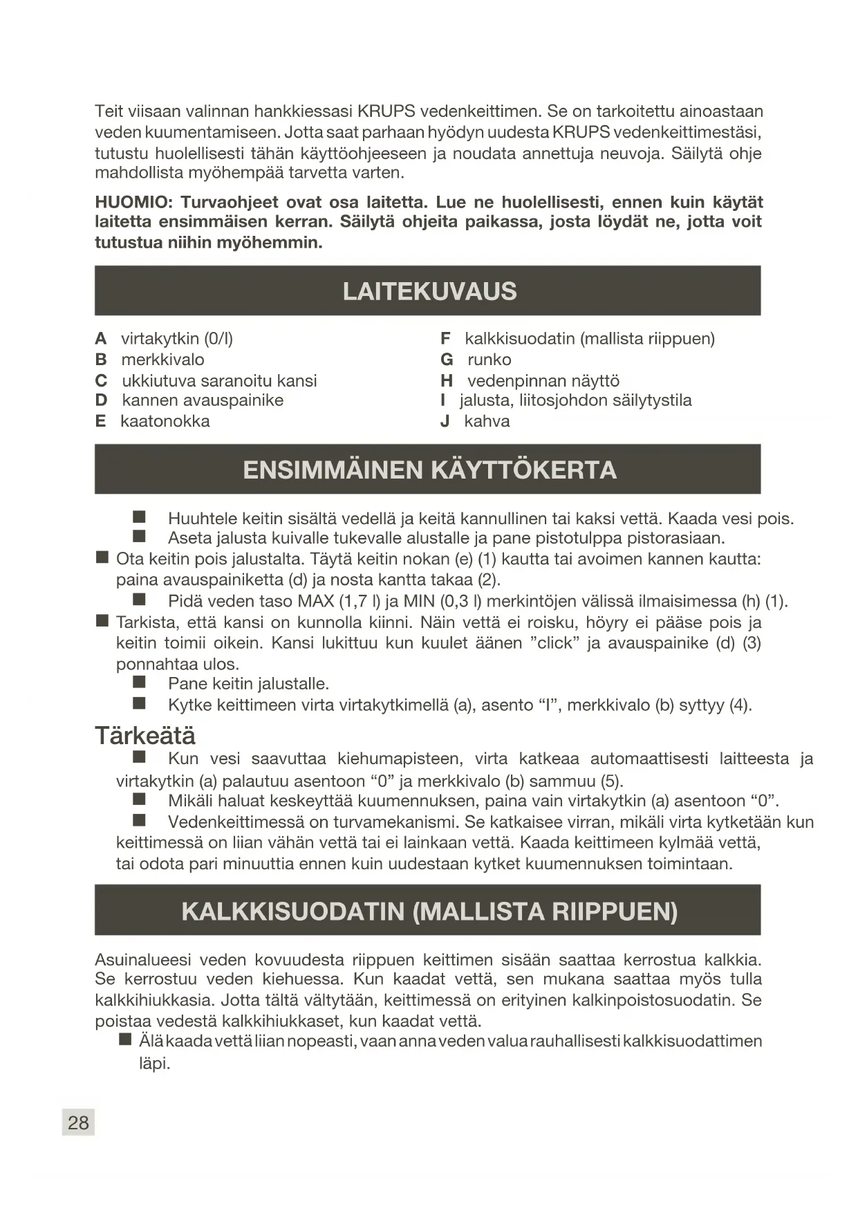 Teit viisaan valinnan hankkiessasi KRUPS vedenkeittimen. Se on tarkoitettu ainoastaan