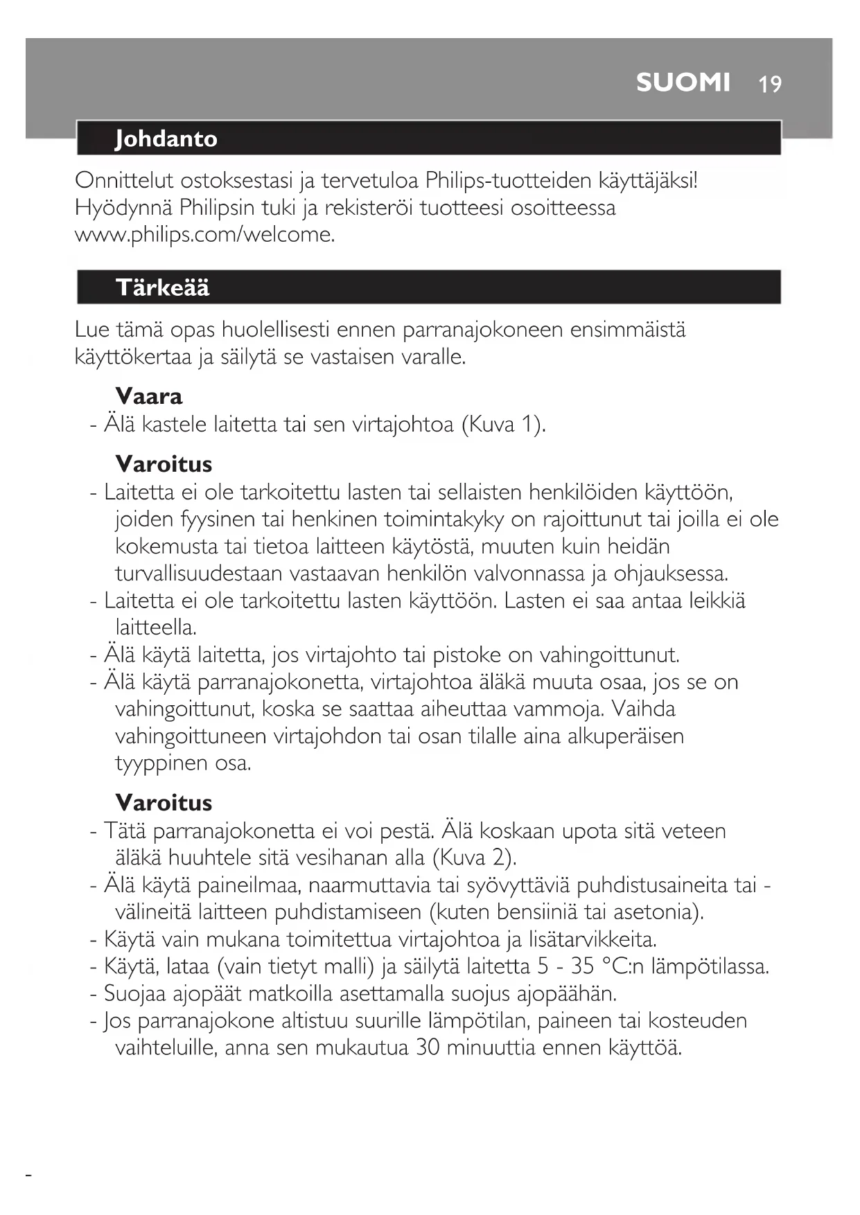 Onnittelut ostoksestasi ja tervetuloa Philips-tuotteiden käyttäjäksi!