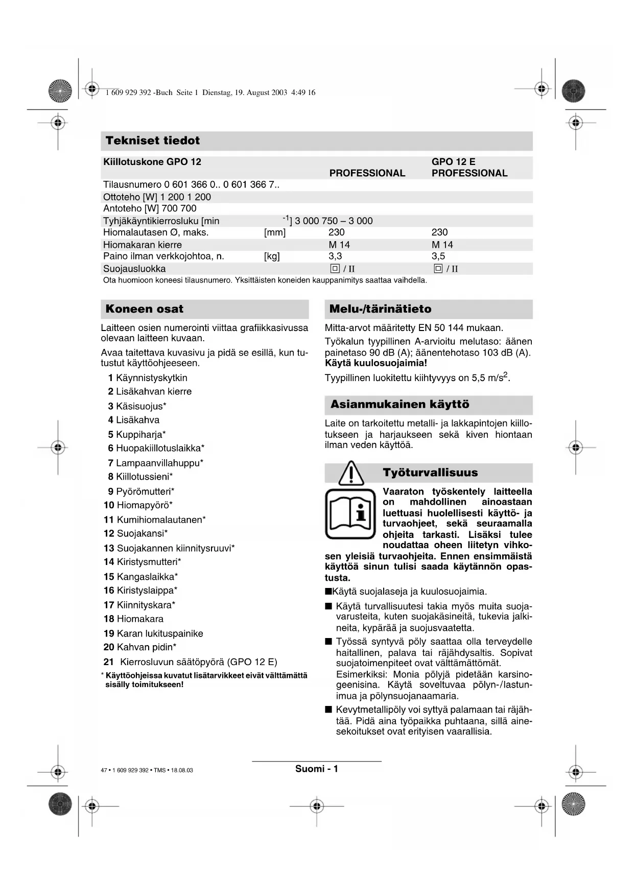 KÄYTTÖOHJE GPO 12 E Professional BOSCH
