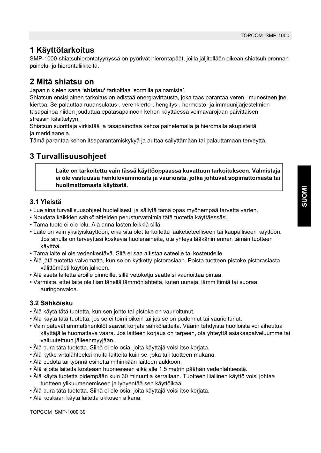 KÄYTTÖOHJE SMP1000 TOPCOM