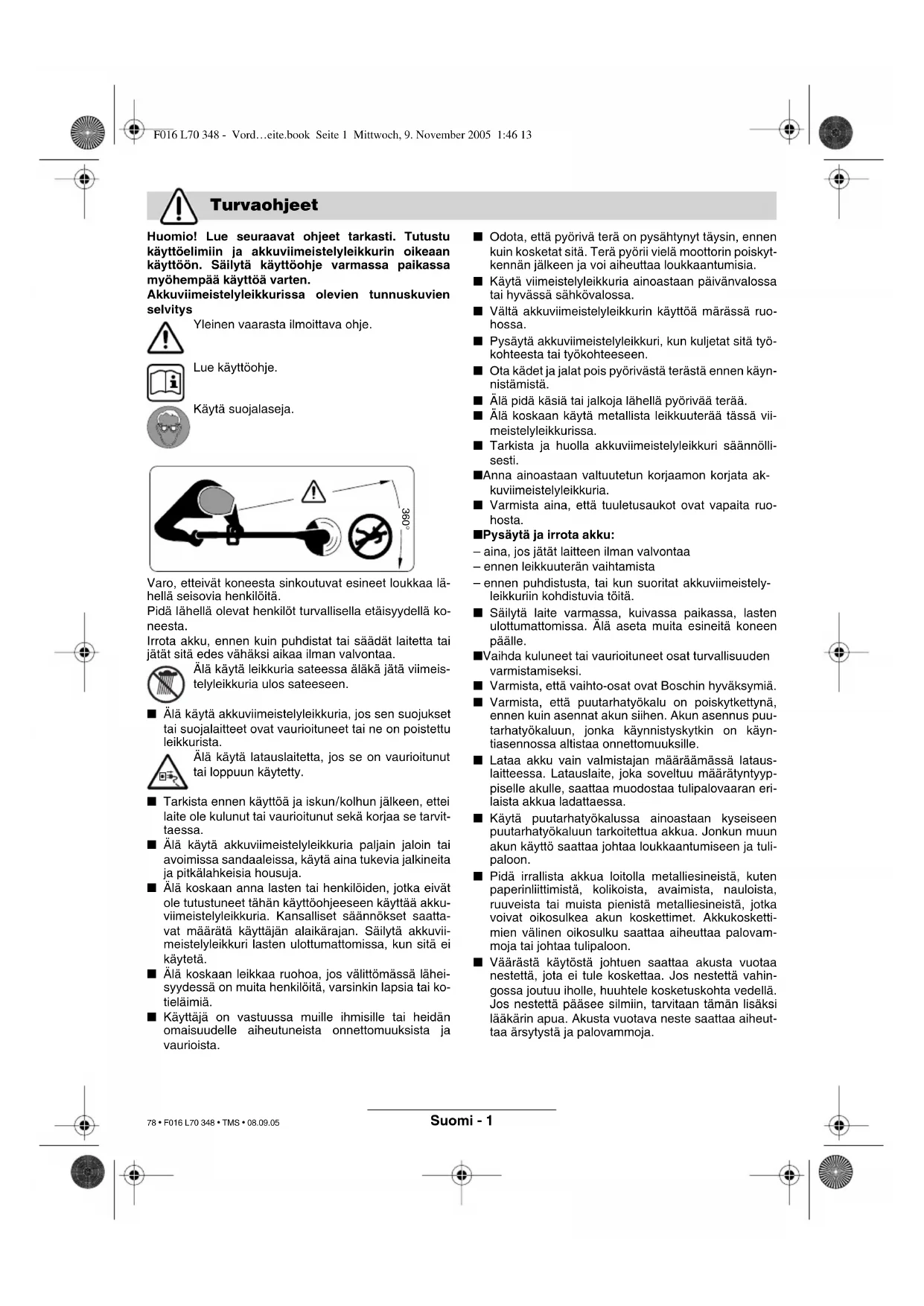 F016 L70 348 - Vord…eite.book Seite 1 Mittwoch, 9. November 2005 1:46 13 78 • F016 L70 348 • TMS • 08.09.05Suomi - 2