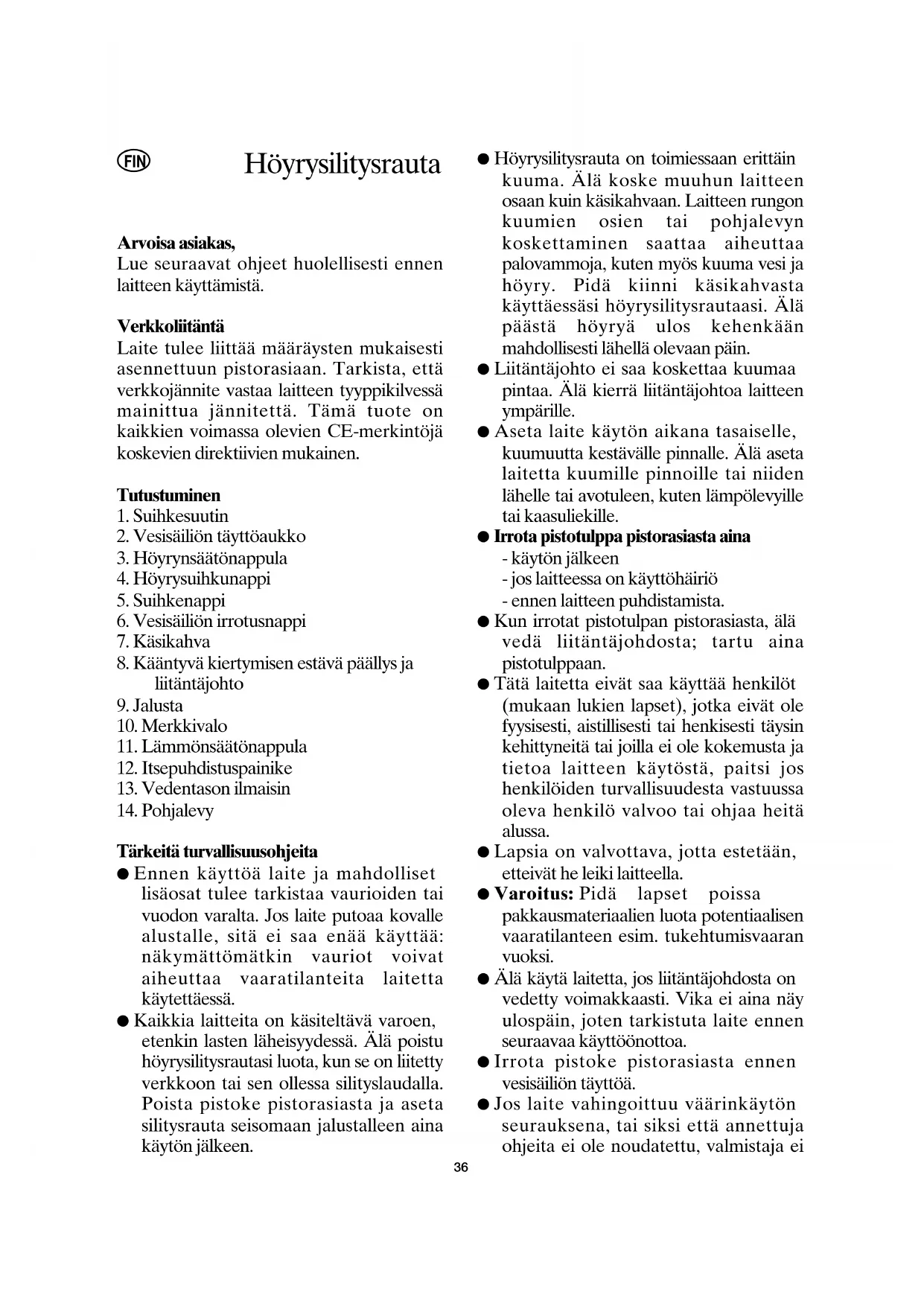 Tärkeitä turvallisuusohjeita