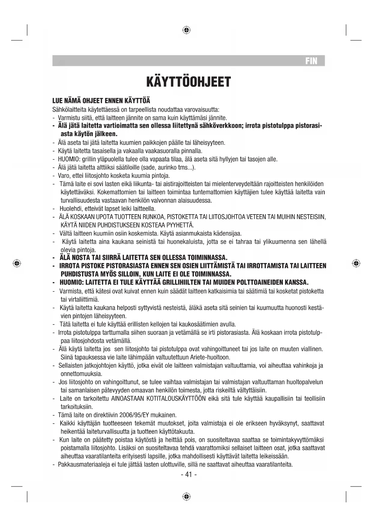 - 40 -KÄYTTÖOHJEET LUE NÄMÄ OHJEET ENNEN KÄYTTÖÄ