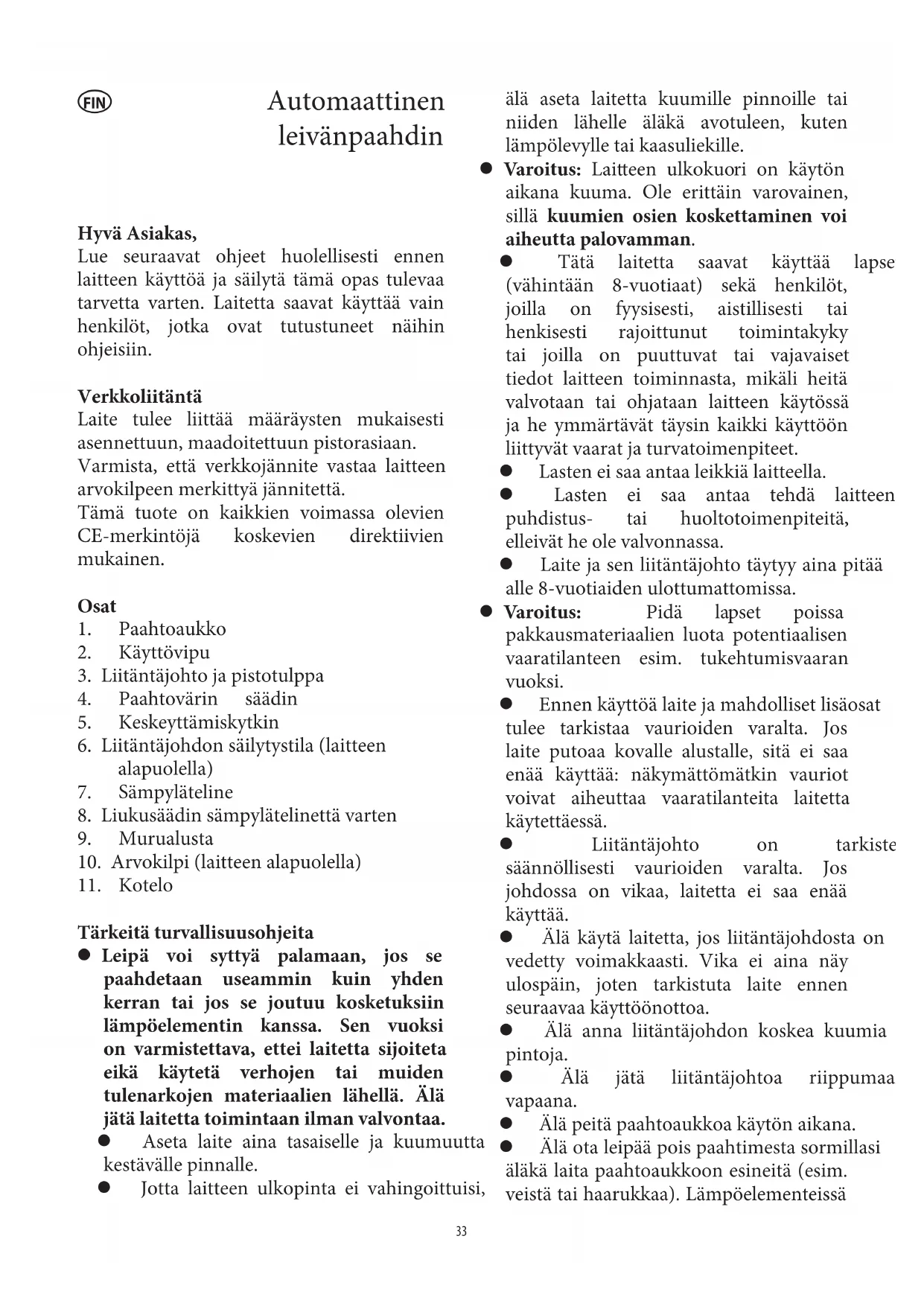 ennen kuin leivänpaahdinta käytetään