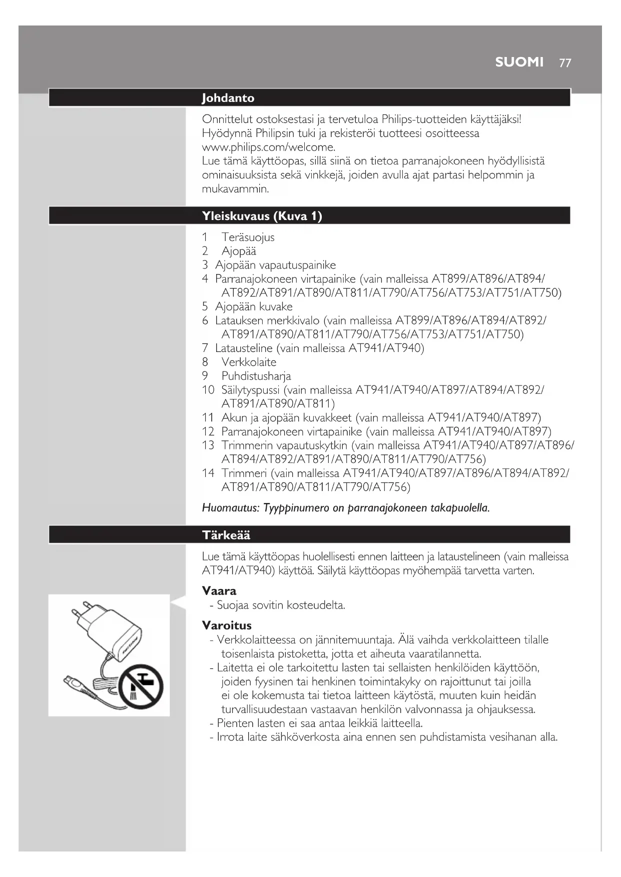 - Älä käytä parranajokonetta, verkkolaitetta, lataustelinettä tai muuta