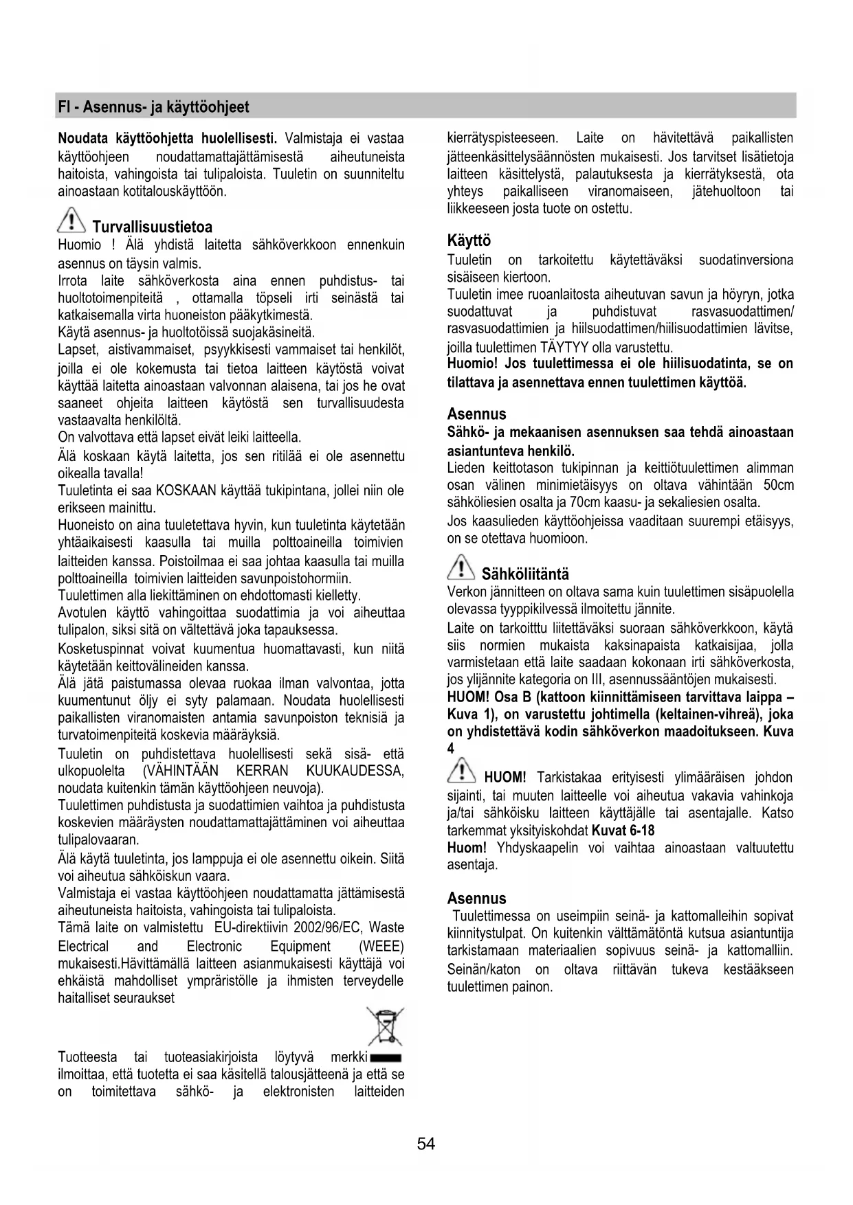 Tämä laite on valmistettu EU-direktiivin 2002/96/EC, Waste