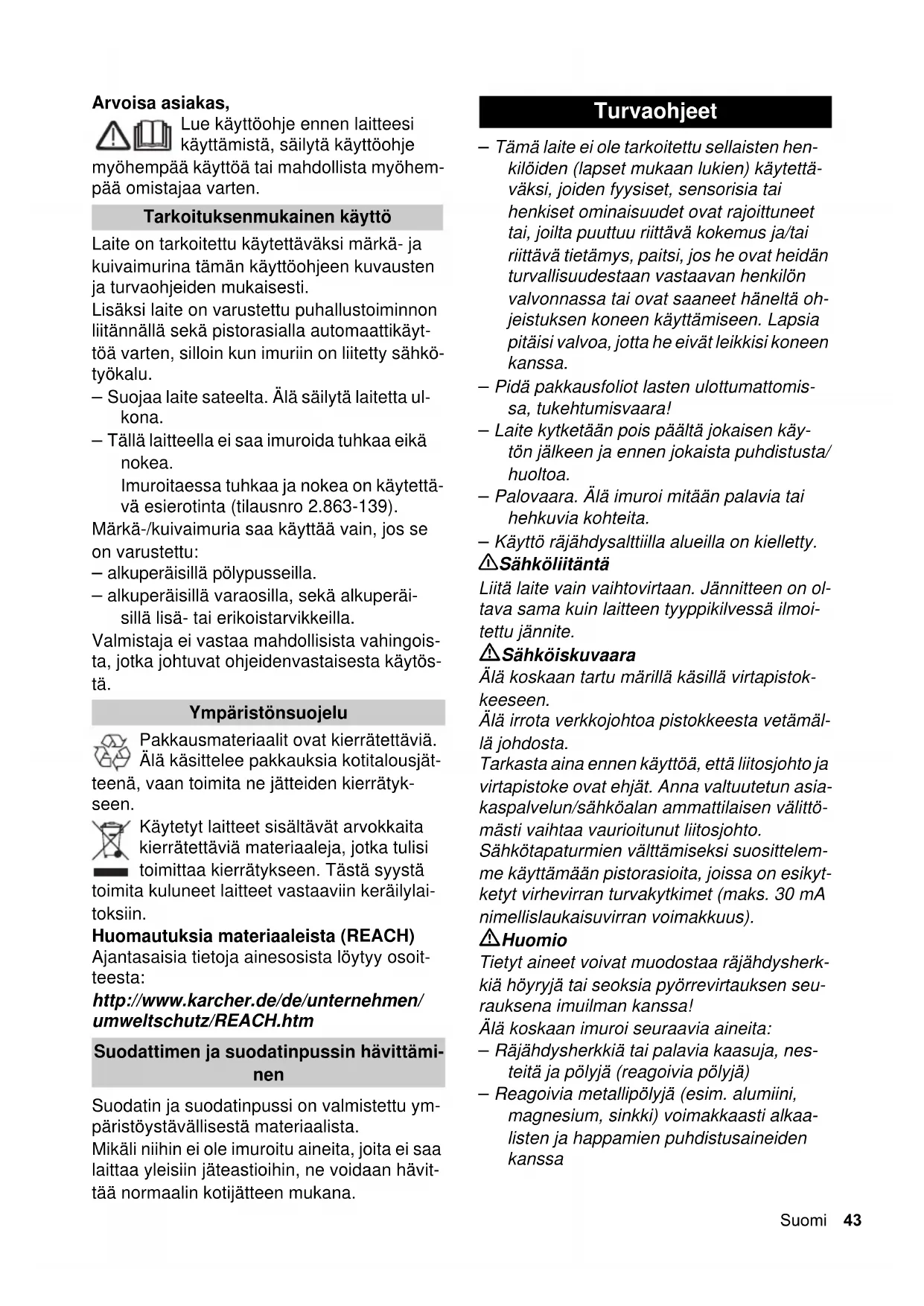 A 2534 PT - Pölynimuri Kärcher - Ilmainen käyttöohje ja opas