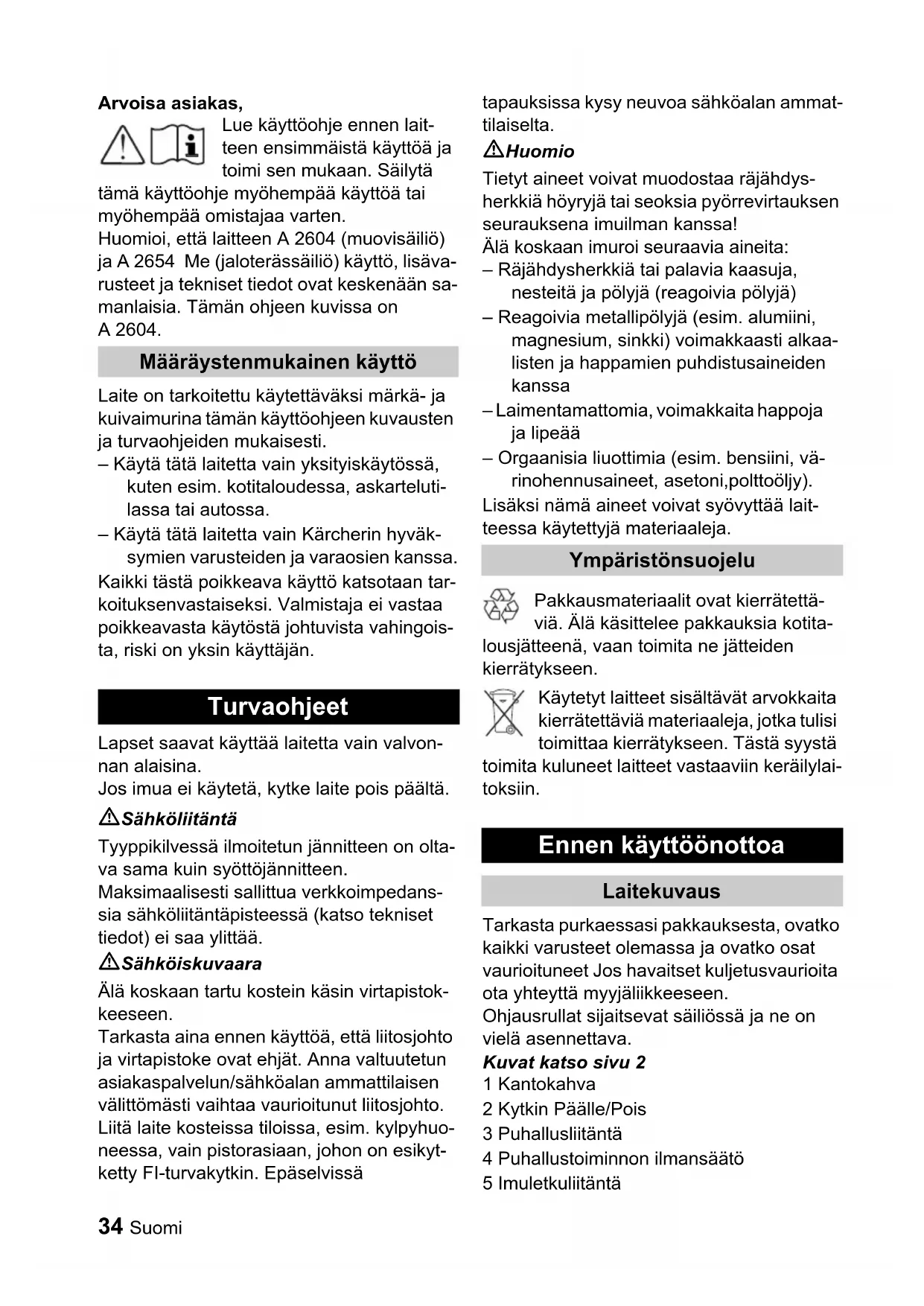 A 2604 - Pölynimuri Kärcher - Ilmainen käyttöohje ja opas
