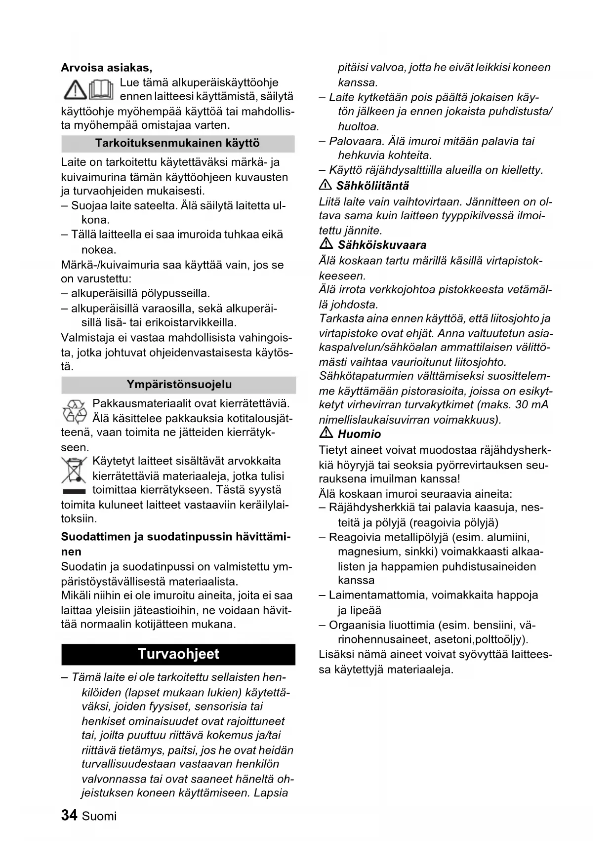 Märkä-/kuivaimuria saa käyttää vain, jos se