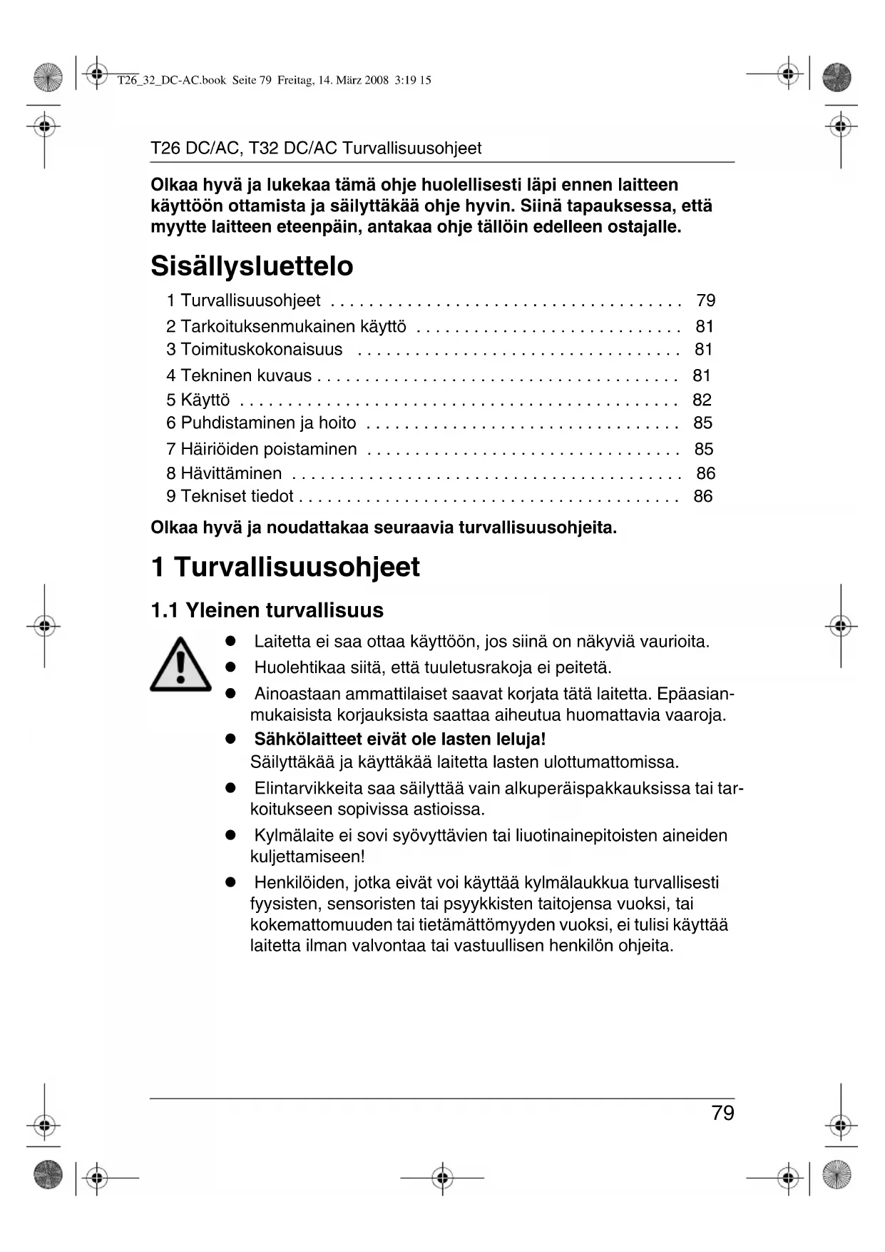 T26_32_DC-AC.book Seite 79 Freitag, 14. März 2008 3:19 15Turvallisuusohjeet T26 DC/AC, T32 DC/AC