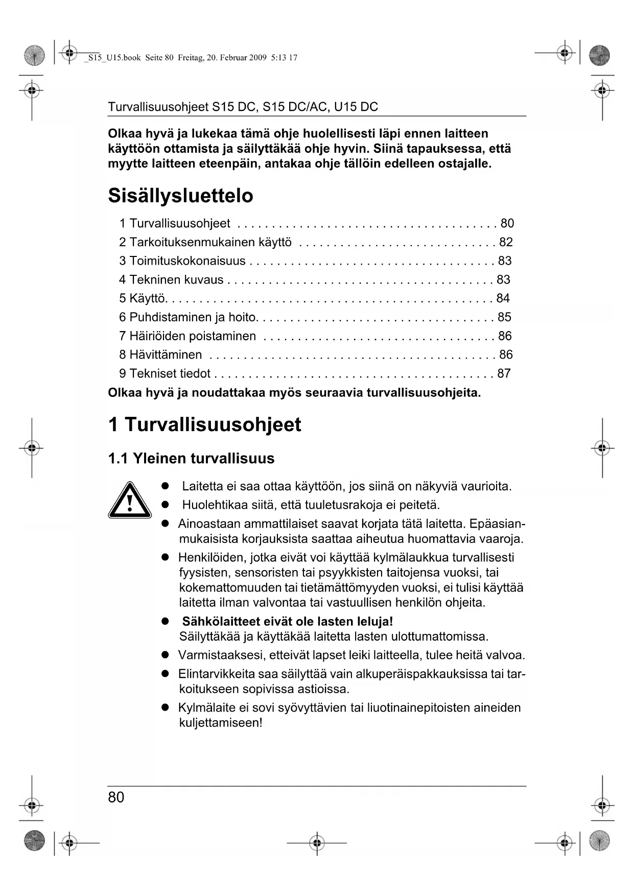 _S15_U15.book Seite 81 Freitag, 20. Februar 2009 5:13 17Tarkoituksenmukainen käyttö S15 DC, S15 DC/AC, U15 DC