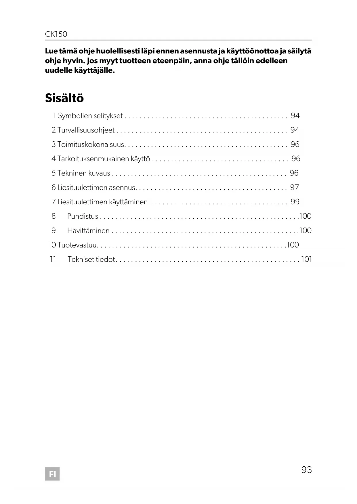 DometicCK150_IOM__EMEA_.book Seite 94 Freitag, 20. Dezember 2019 12:01 12FI CK150 Turvallisuusohjeet