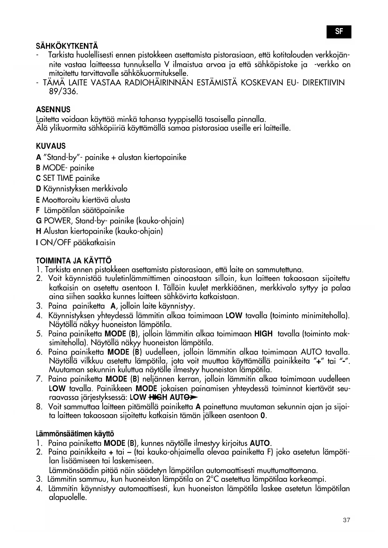 7. Paina painiketta MODE (B) neljännen kerran, jolloin lämmitin alkaa toimimaan uudelleen
