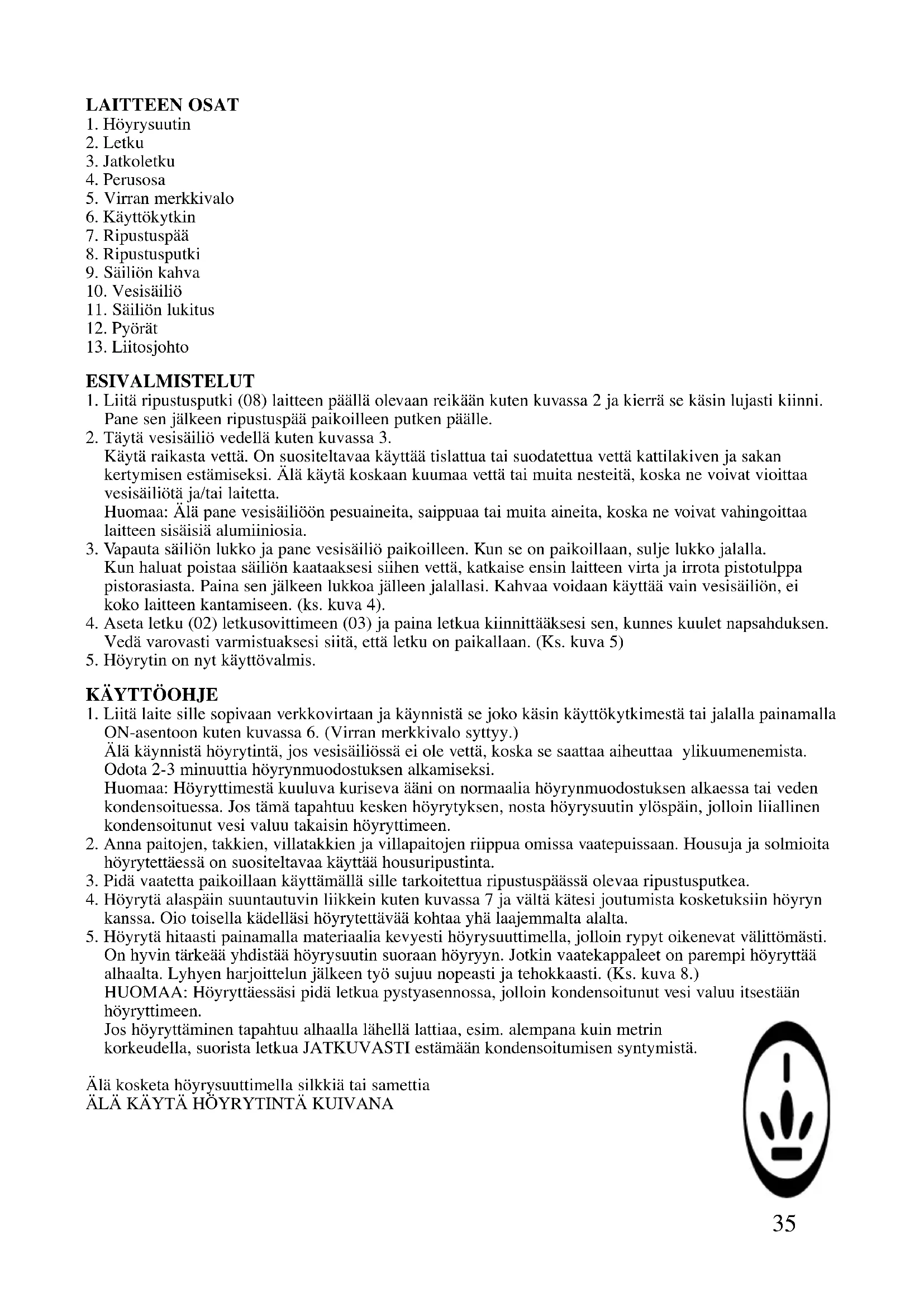 - Kätevä, ergonomisesti muotoiltu höyrysuutin (ks. kuva 1).35 LAITTEEN OSAT